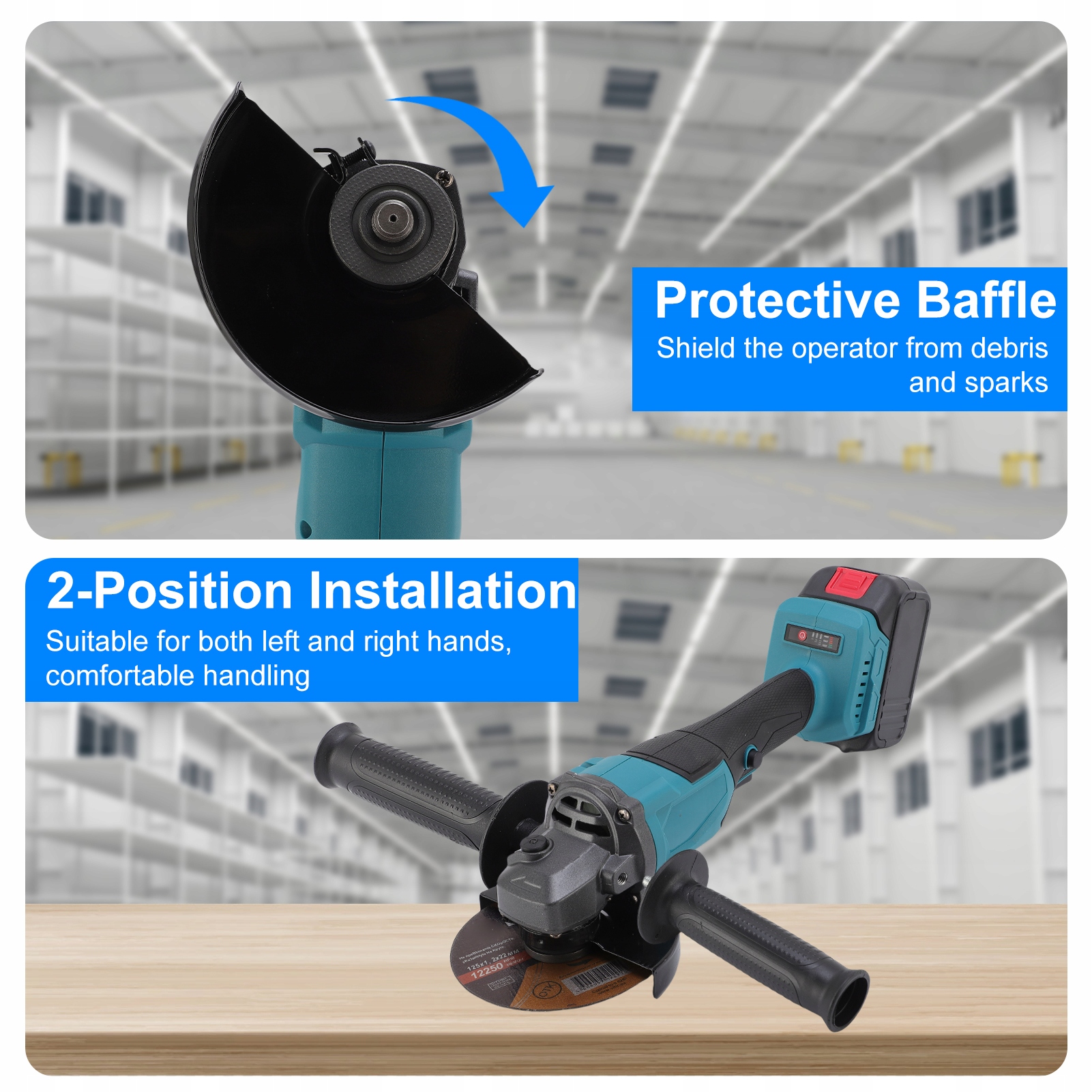 5. Конфігурація батареї: ця кутова шліфувальна машина оснащена 2 батареями великої ємності та швидким зарядним пристроєм, що відповідає вимогам розширених завдань,