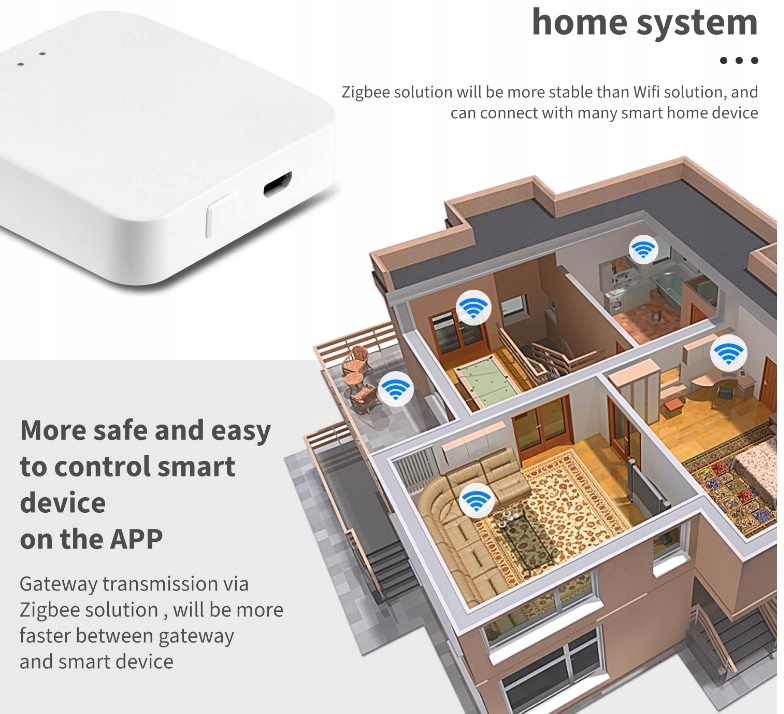 Блок керування дозволяє підключати елементи системи ZigBee до систем, що працюють у стандарті WiFi, завдяки чому можна побудувати багатосистемну установку розумного будинку, керовану з одного загальний додаток Tuya Smart Life з можливістю взаємодії та пристроїв автоматизації під різними стандартами зв'язку.