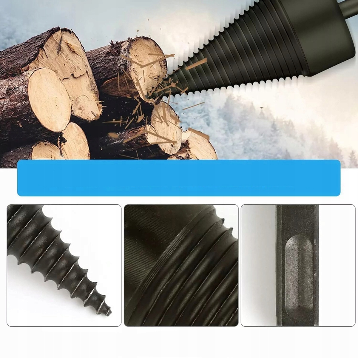 Свердло для розколювання дров із високовуглецевої сталі. Їх нелегко пошкодити вібрацією. Високотемпературне загартування, дуже висока твердість. Він надзвичайно міцний, стійкий до ударів і зносу.