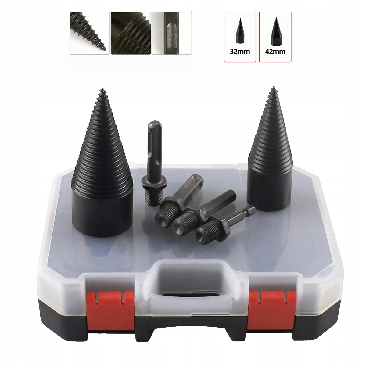 ✅ НАБІР З ДВОХ СВЕРДЛ: ви отримуєте два шнекові наконечники розміром 45 мм і 32 мм, які ідеально підходять для розколювання та рубання деревини.
