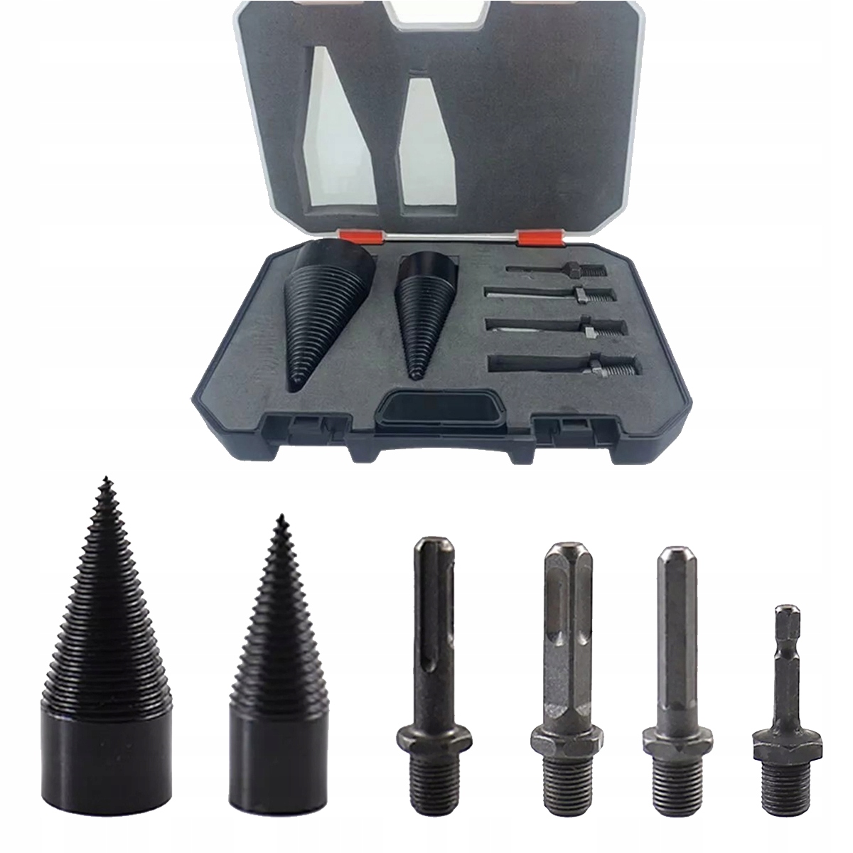 Дровокол із свердлильним конусом 45 мм + 32 мм із 4 свердлильними патронами, гвинтовий конус для свердла Ступінчасте свердло Різак по дереву Сталеве конусне свердло Високошвидкісне свердло для дров Чорне