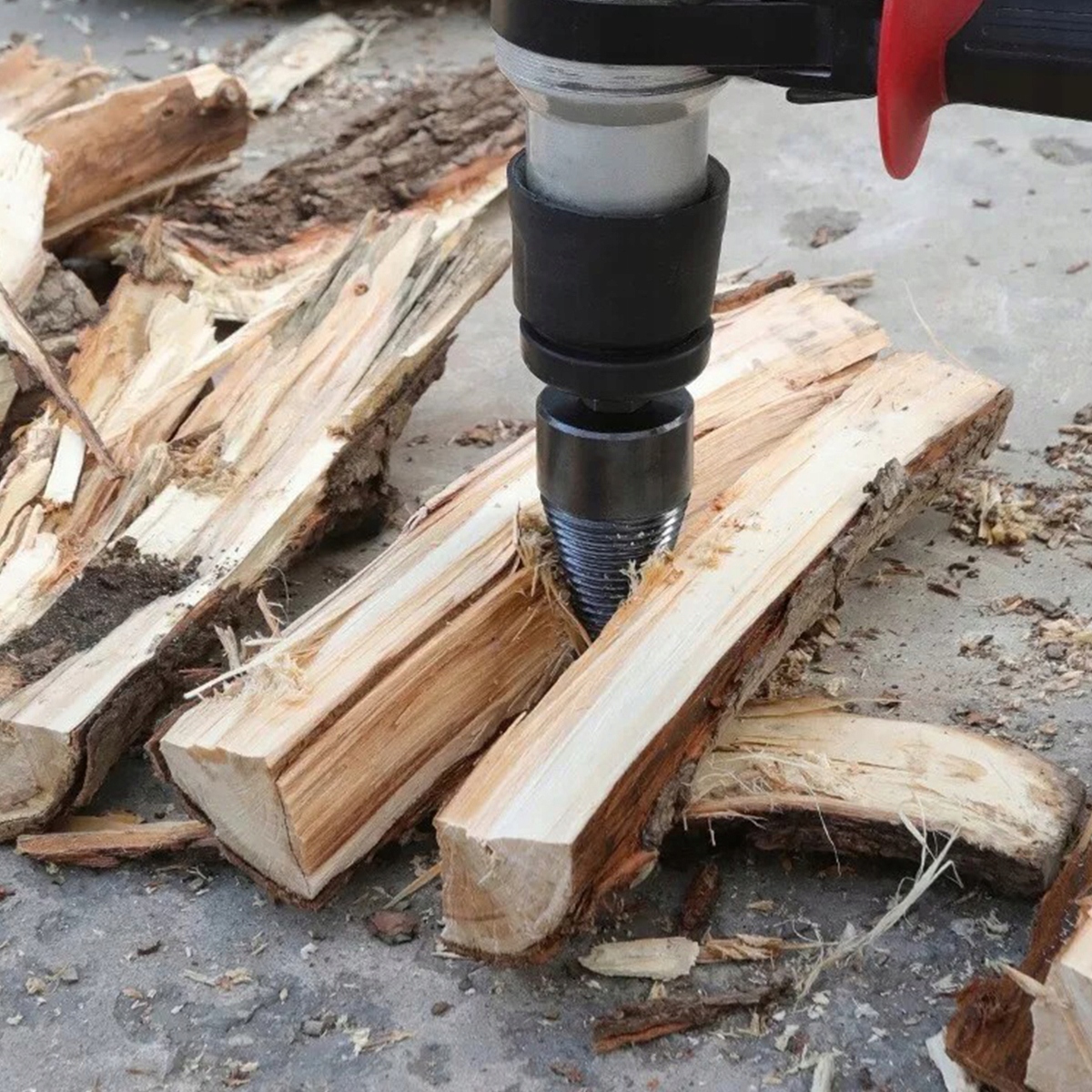 Просто вставте свердло в дриль і просвердліть отвір у деревині, і дрова легко розсипляться. Немає рухомих лез і не турбуйтеся про те, що ваші діти розмахують сокирою.