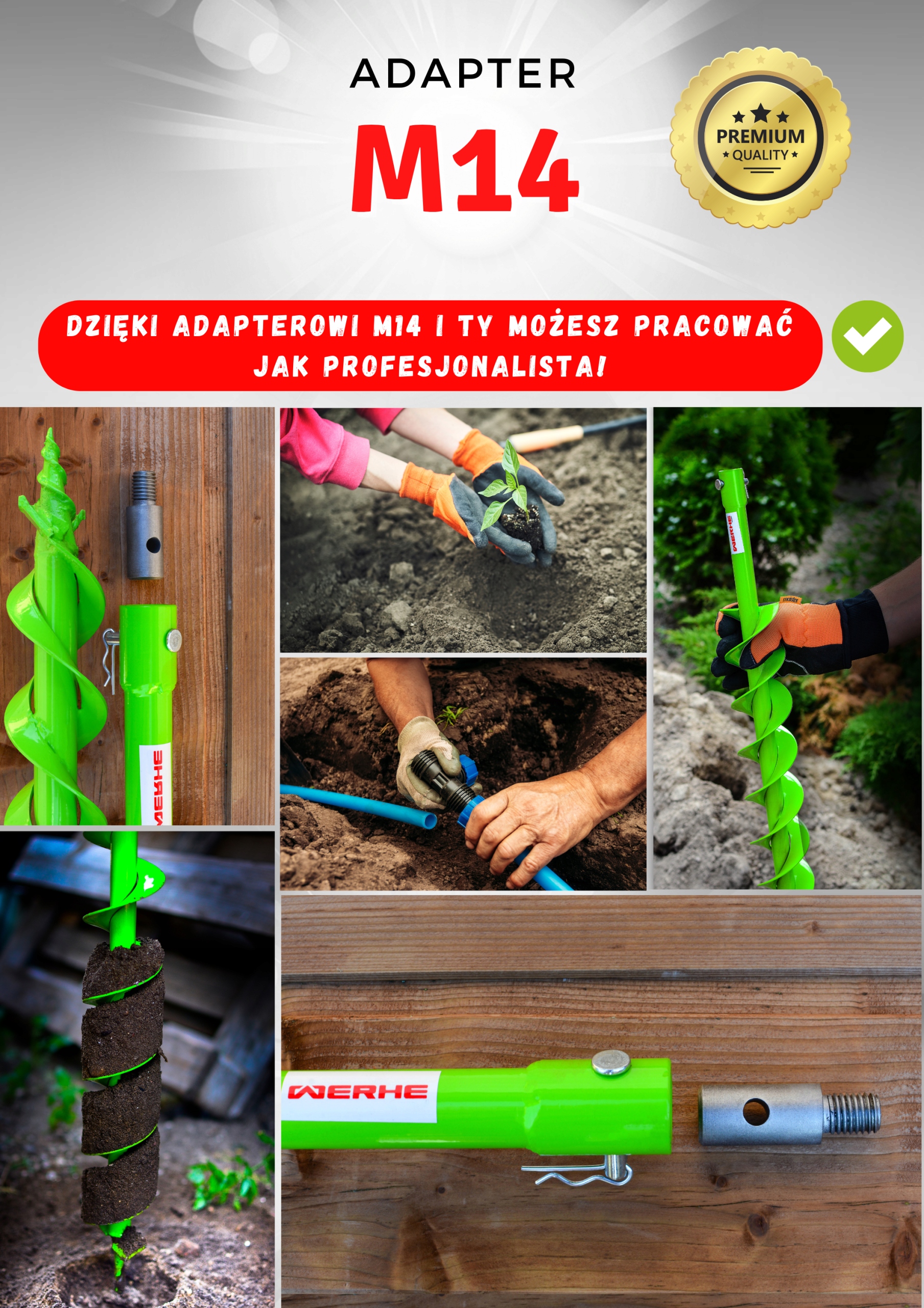 Придбавши адаптер M14 для вашого міксера, ви зможете використовувати це обладнання для буріння свердловин, риття стовпів, огорож, дерев. Ви також можете використовувати його для протягування кабелю чи труби під тротуарами чи дорогами.