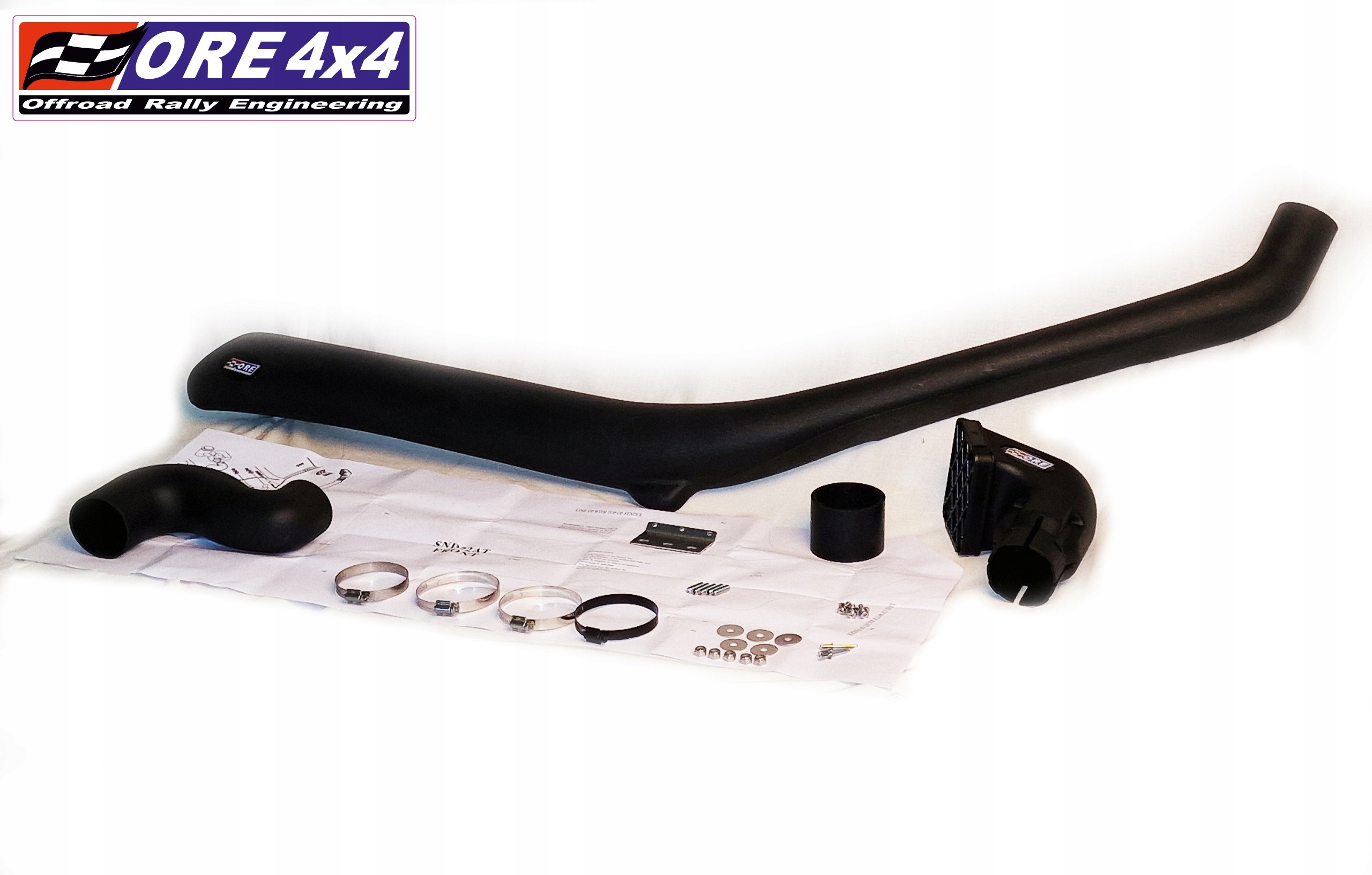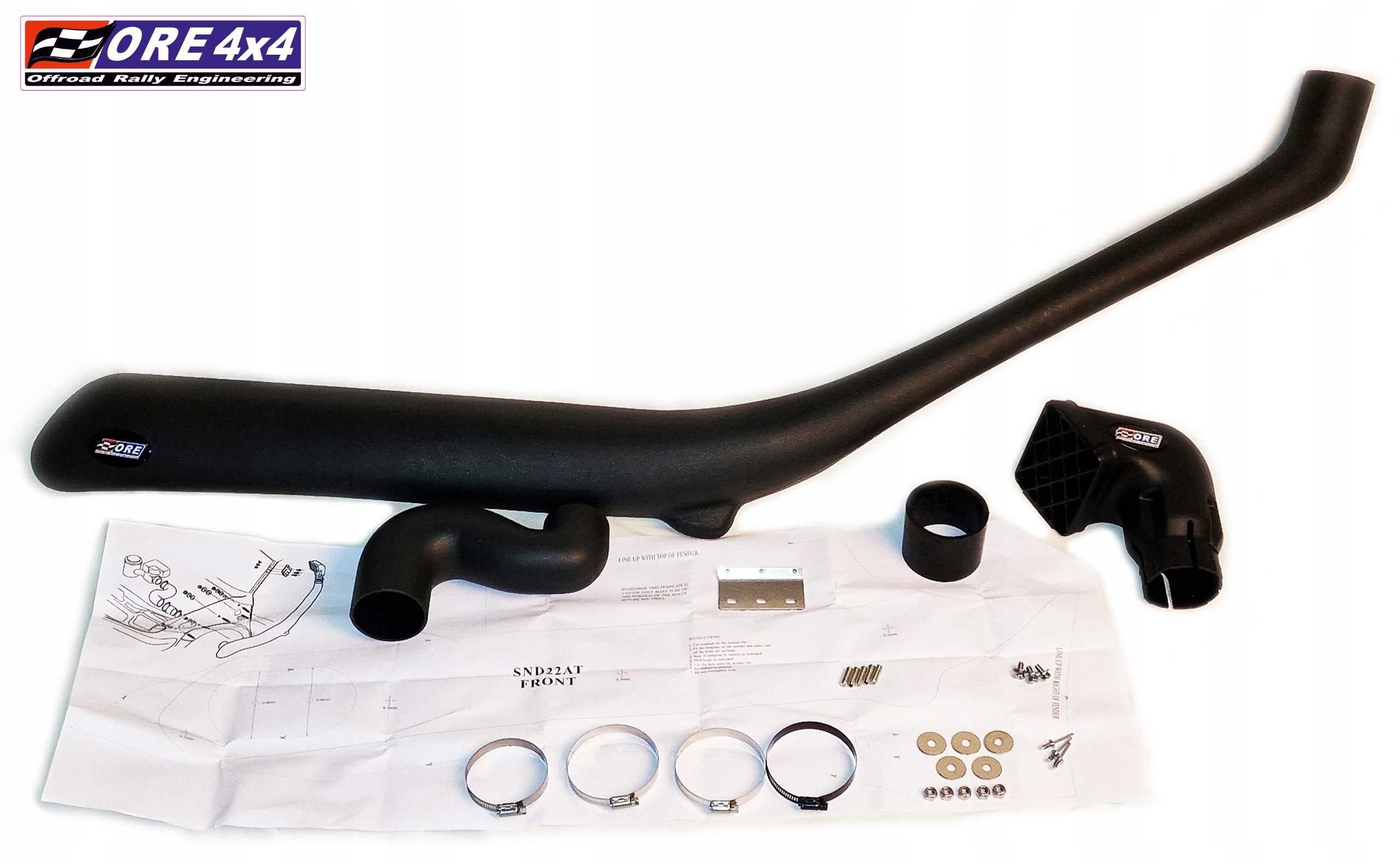 Шноркель для Nissan Navara D22 / Nissan Pathfinder/ Terrano II 01/1997 - 10/2001; У набір входить все необхідне для його встановлення, включаючи затискачі, з’єднувачі, шаблон, гвинти тощо. Шноркелі ORE4x4 – високоякісні вироби, ідеально підігнані, виготовлені з матеріалу LLPDE, усі металеві елементи оцинковані або виготовлені з нержавіючої сталі.
