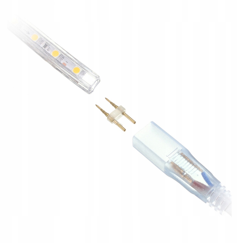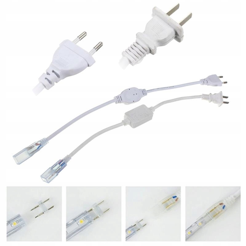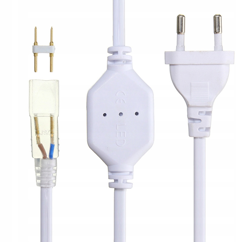 Кабель живлення для світлодіодних стрічок 230В шириною 12 мм. Всередині кабелю є випрямляч. У комплект також входить роз'єм. Максимальна довжина живильної стрічки 100м. Якщо після підключення кабель не працює, підключіть джерело живлення навпаки.