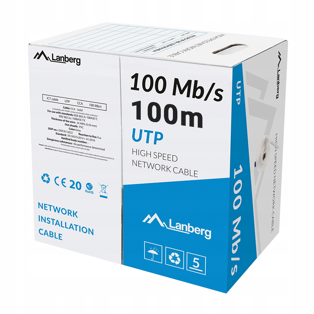 - Кабель вита пара CAT.5e U/UTP 100 м синій Lanberg