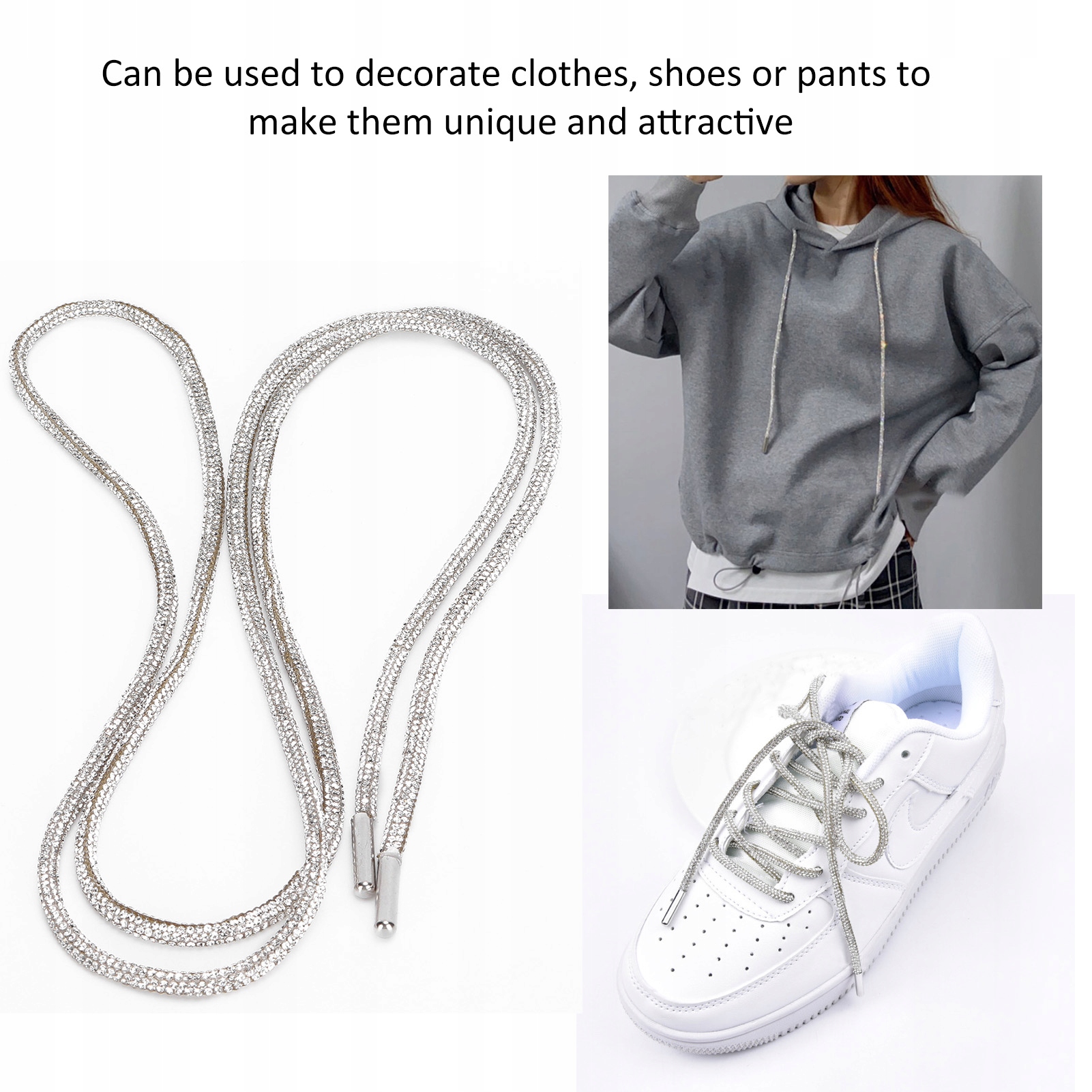 1. Шнурок виготовлено зі стразового матеріалу, міцного матеріалу, його нелегко носити та можна використовувати протягом тривалого часу.