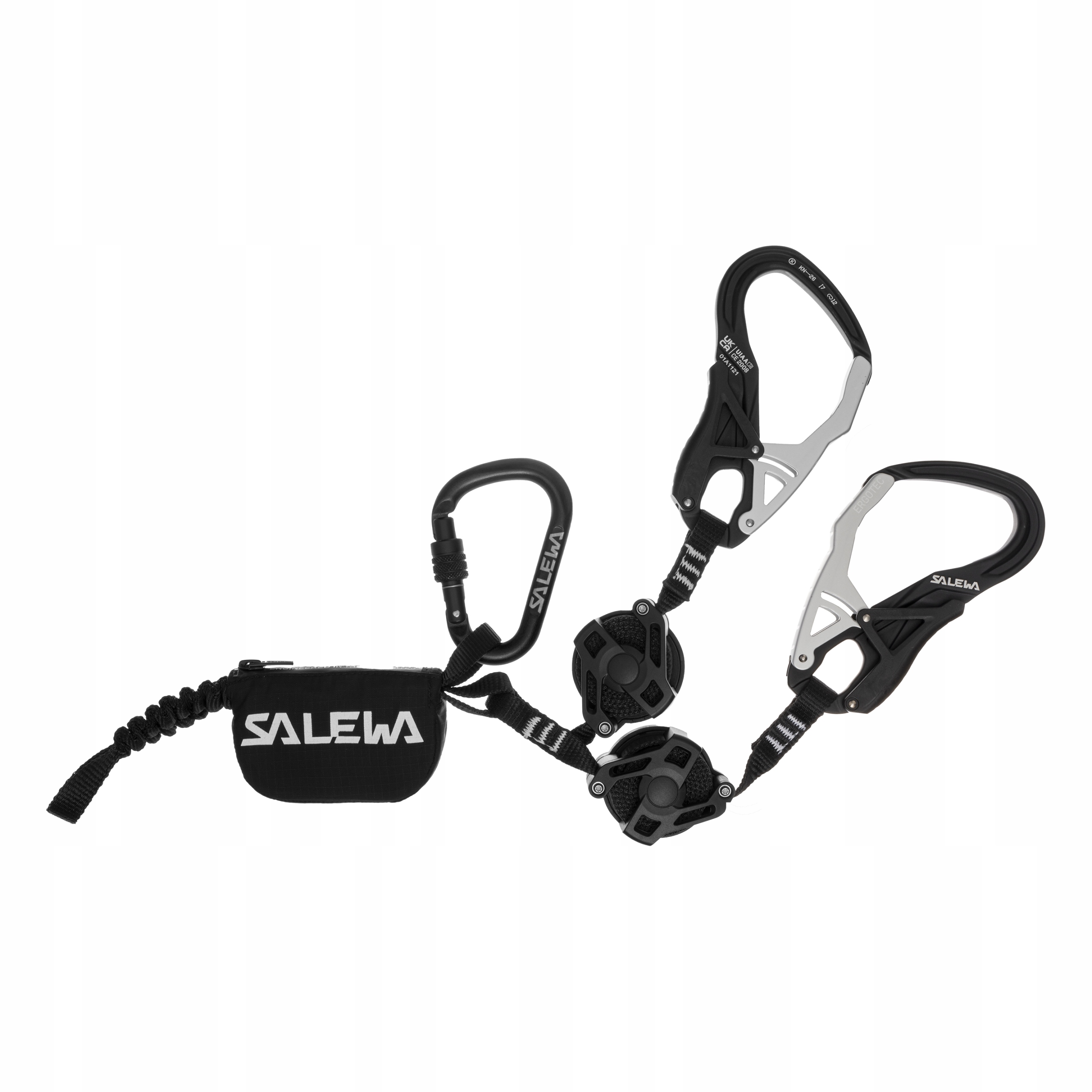 Ергономічні карабіни Ergotec 3.0 добре лягають у руку, ними легко користуватися навіть у рукавичках, вони мають великий вхідний отвір для швидшого та безпечнішого прикріплення та від’єднання без защемлення пальців. Крім того, автоматичний механізм блокування запобігає випадковому відкриттю. Оснащений петлею для опори та зручною еластичною петлею для кріплення.