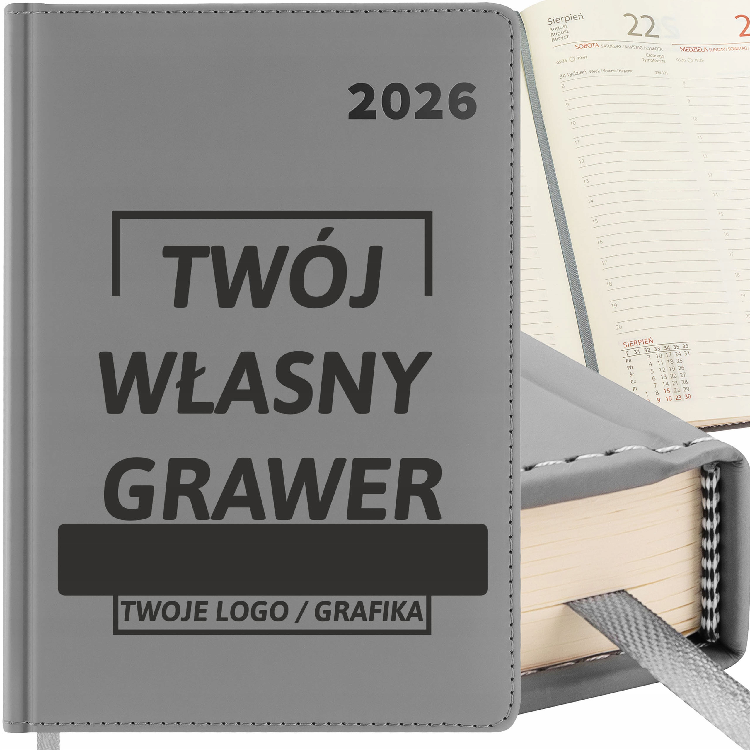 ЩОДЕННИЙ КАЛЕНДАР А4 2026 РОЗКЛАД ЗОШИТ З ГРАВІЮВАННЯМ ЛОГОТИПУ СІРИЙ