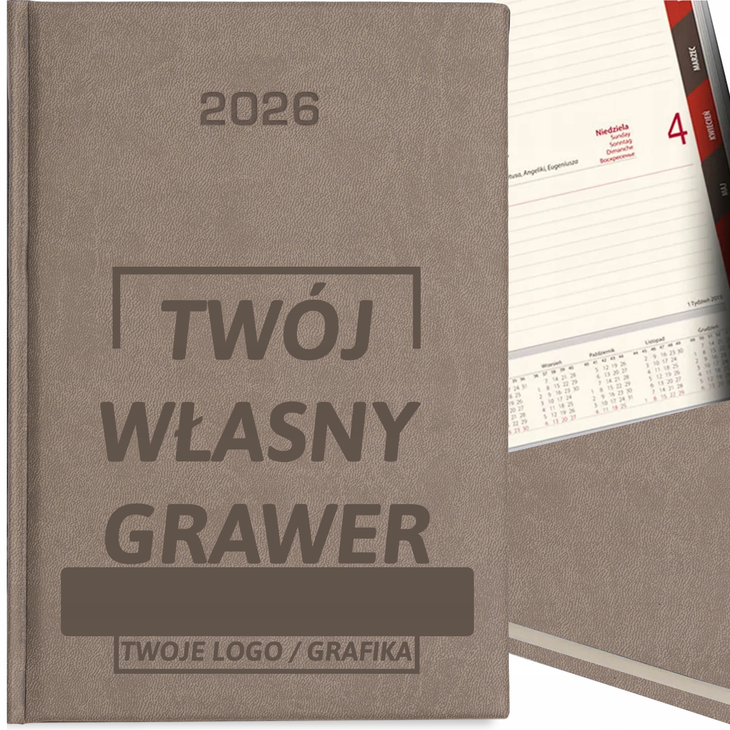 ЩОДЕННИЙ КАЛЕНДАР А5 2026 РОЗКЛАД ЗОШИТ З ГРАВІЮВАННЯМ ЛОГОТИПУ СІРИЙ