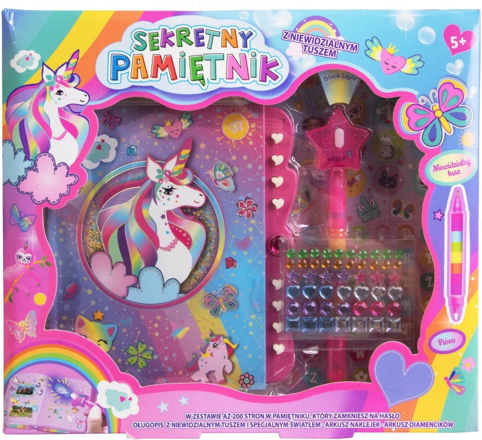 включена ручка, наповнена магічною чорнилою, яка розкриває її секрети лише у світлі. Це робить написання не тільки задоволення, але й особливий досвід. Щоденник оснащений дивовижними наклейками, які дозволять персоналізувати та прикрасити кожну сторону. Безпечне закриття захищає ваші найпотаємніші думки від несподіваного відкриття.