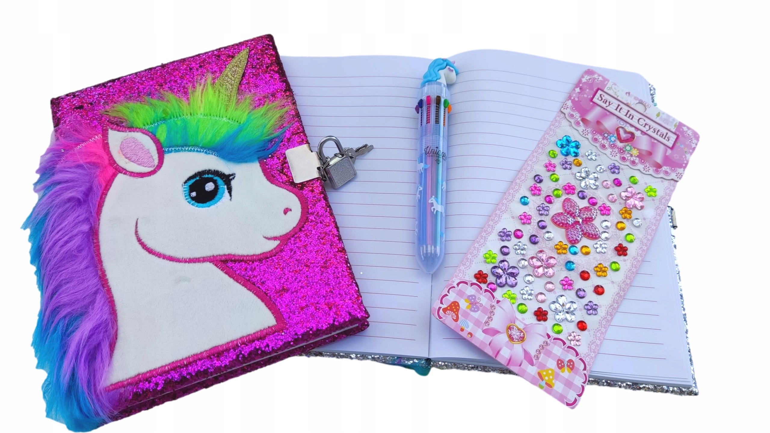 БЛИСКУЧИЙ РОЖЕВИЙ ЩОДЕННИК ЄДИНОРОГА З КОЛЬОРОВОЮ ГРИВОЮ ПЛЮС БЕЗКОШТОВНІ ПОДАРУНКИ: РУЧКА ТА РОМБАЧНИЙ АБО ОПУКЛИЙ СТІКЕР