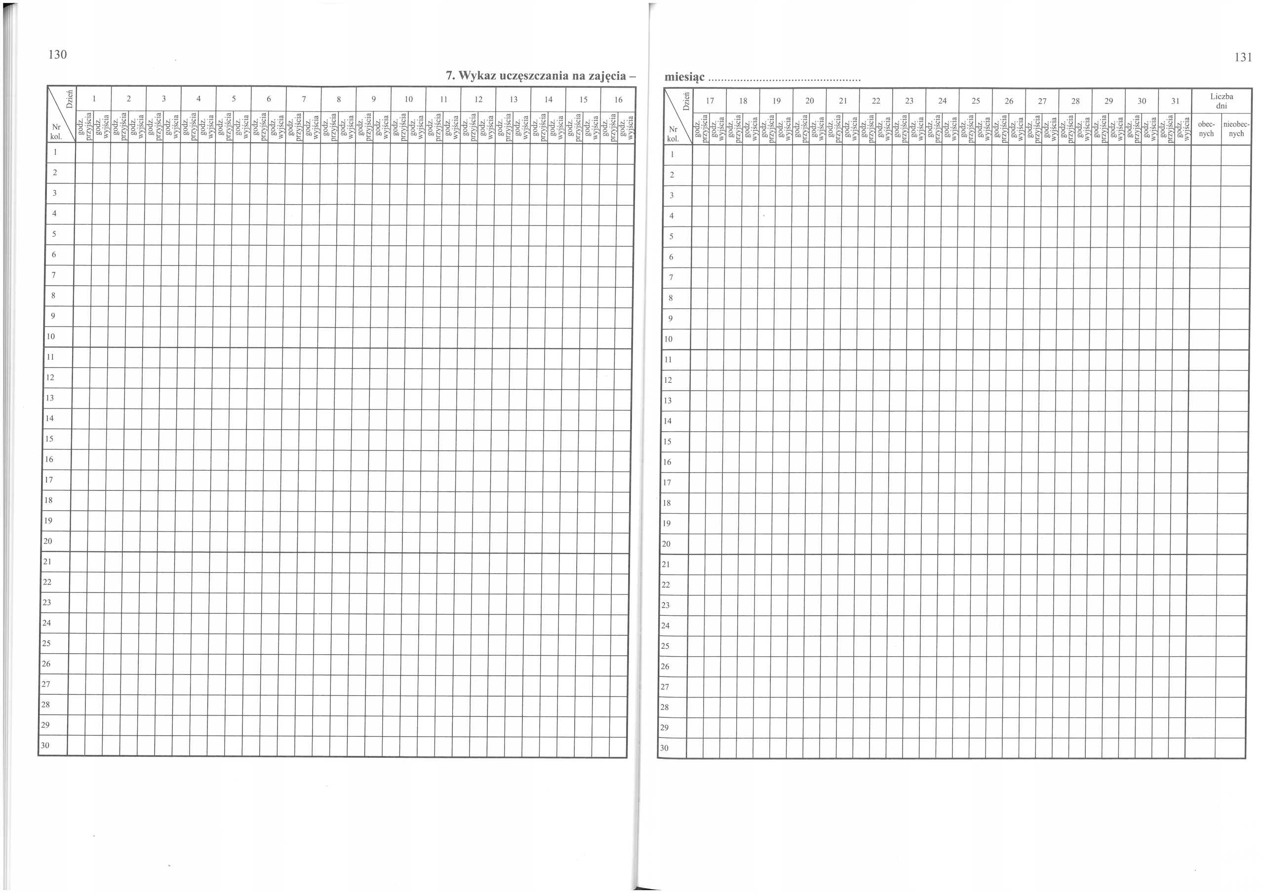 7. Список відвідувальних класів - місяць ........... (на 12 місяців)