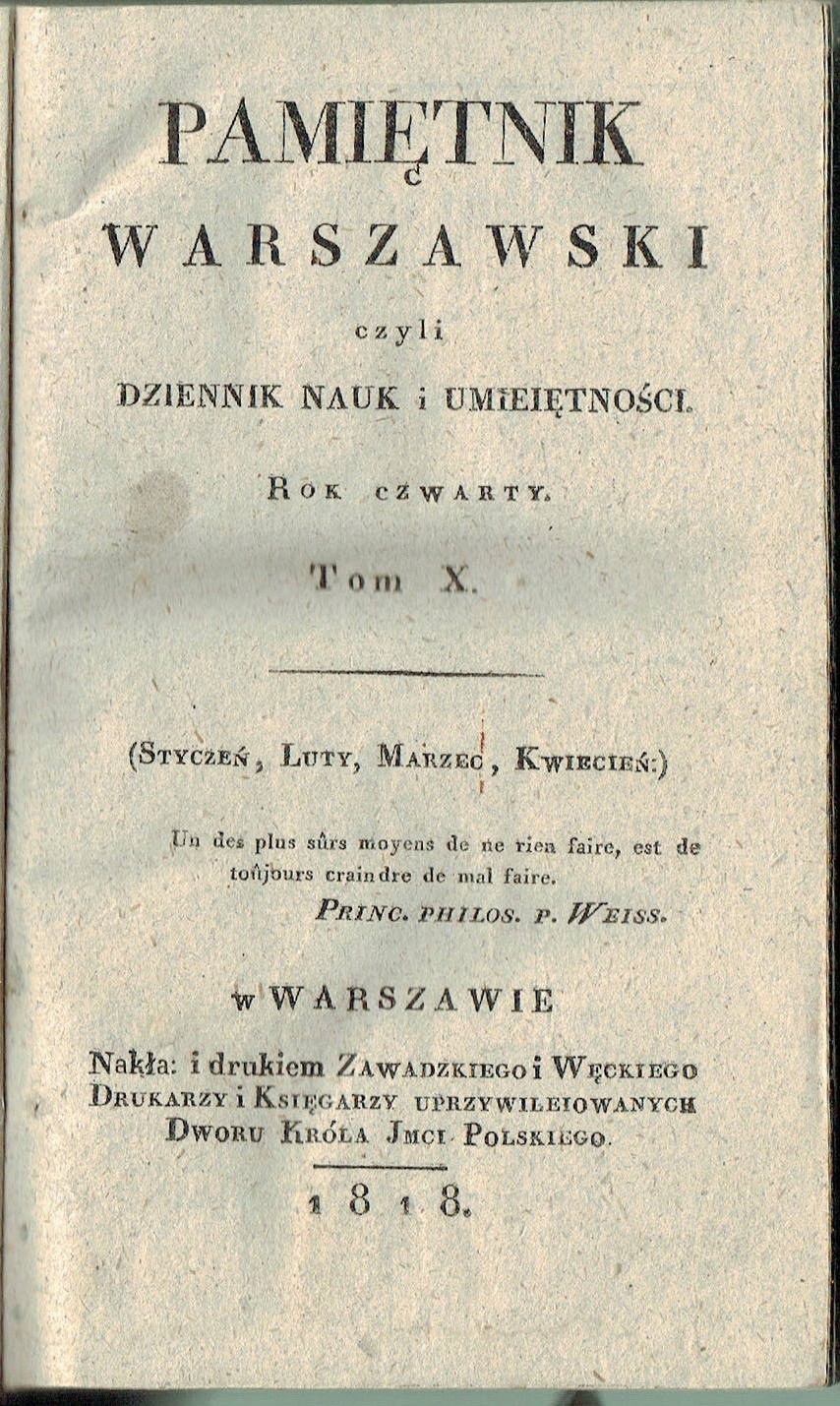 Warsaw diary h1> i.e. a diary of sciences and skills h1> year fourth volume 10 h1> (January, February, March, April 1818) h1>