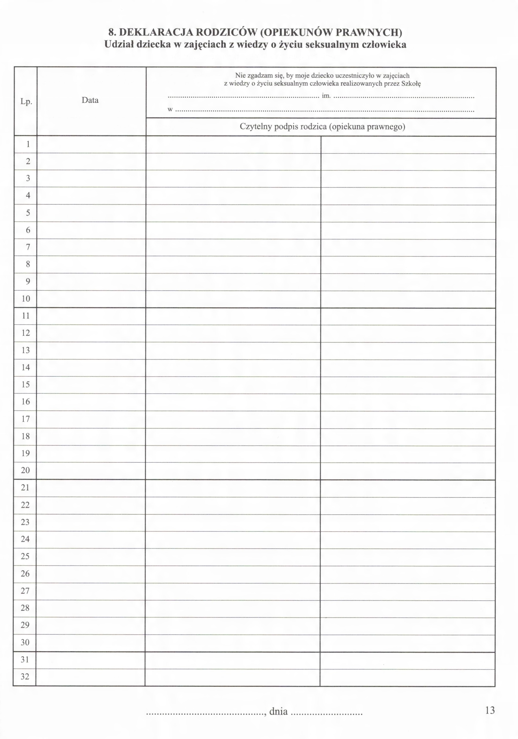 8. Заява батьків щодо проведення занять зі статевого життя людини