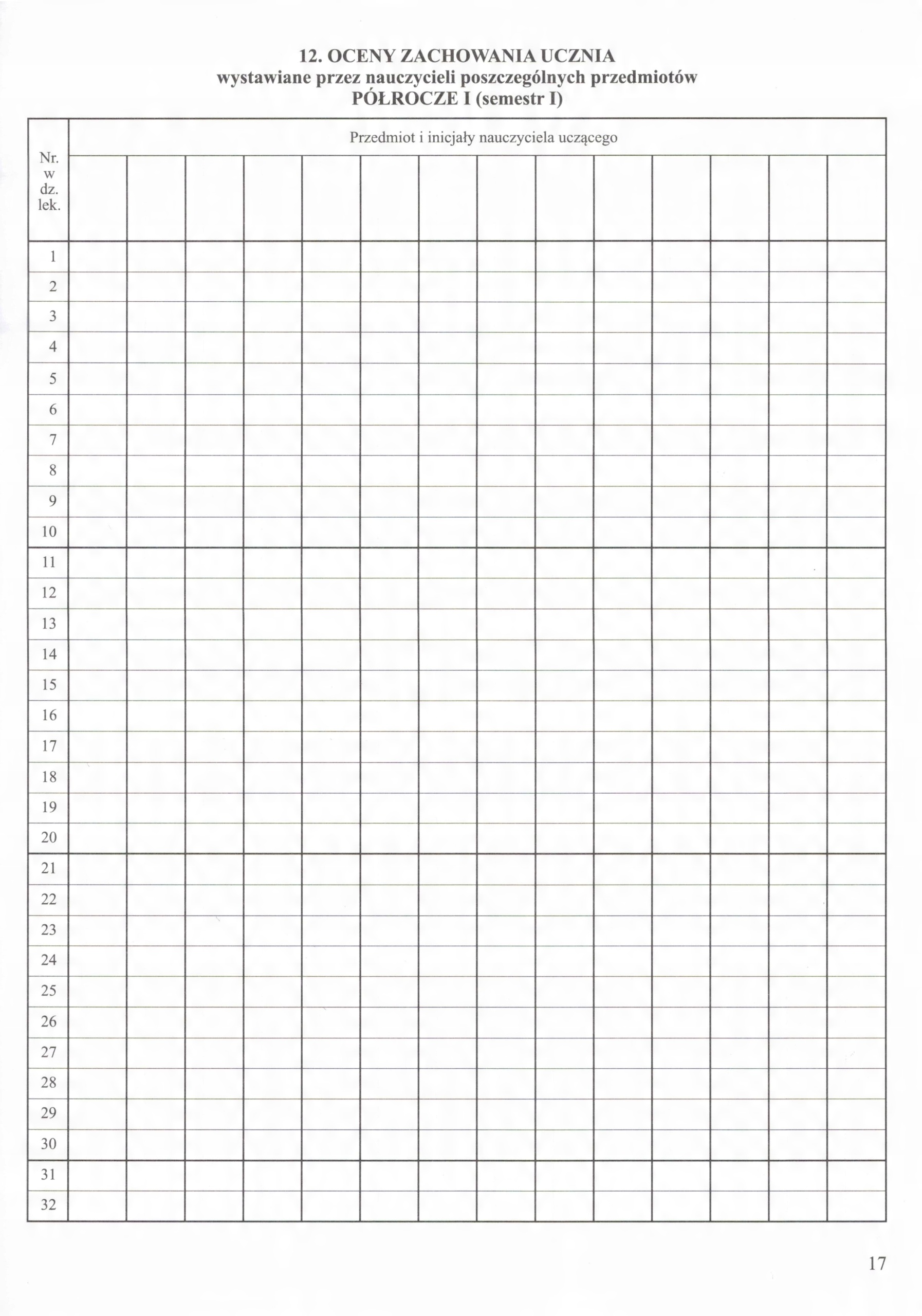 12. Оцінки поведінки учнів, виставлені вчителями, півріччя І