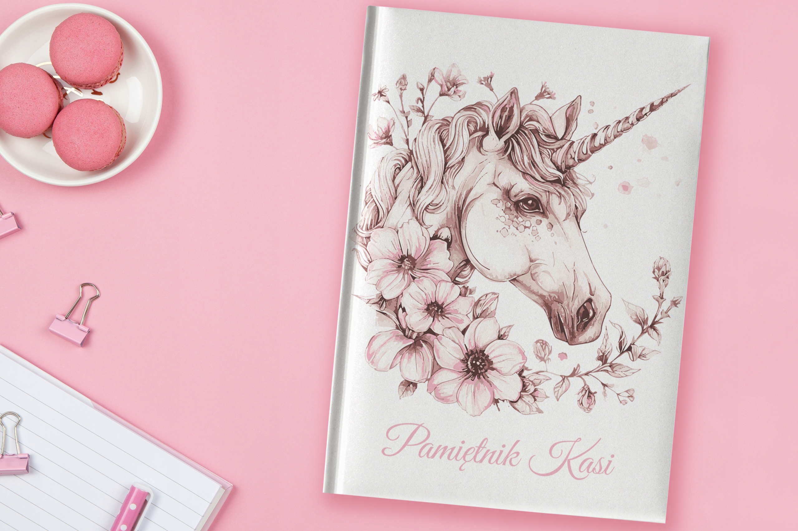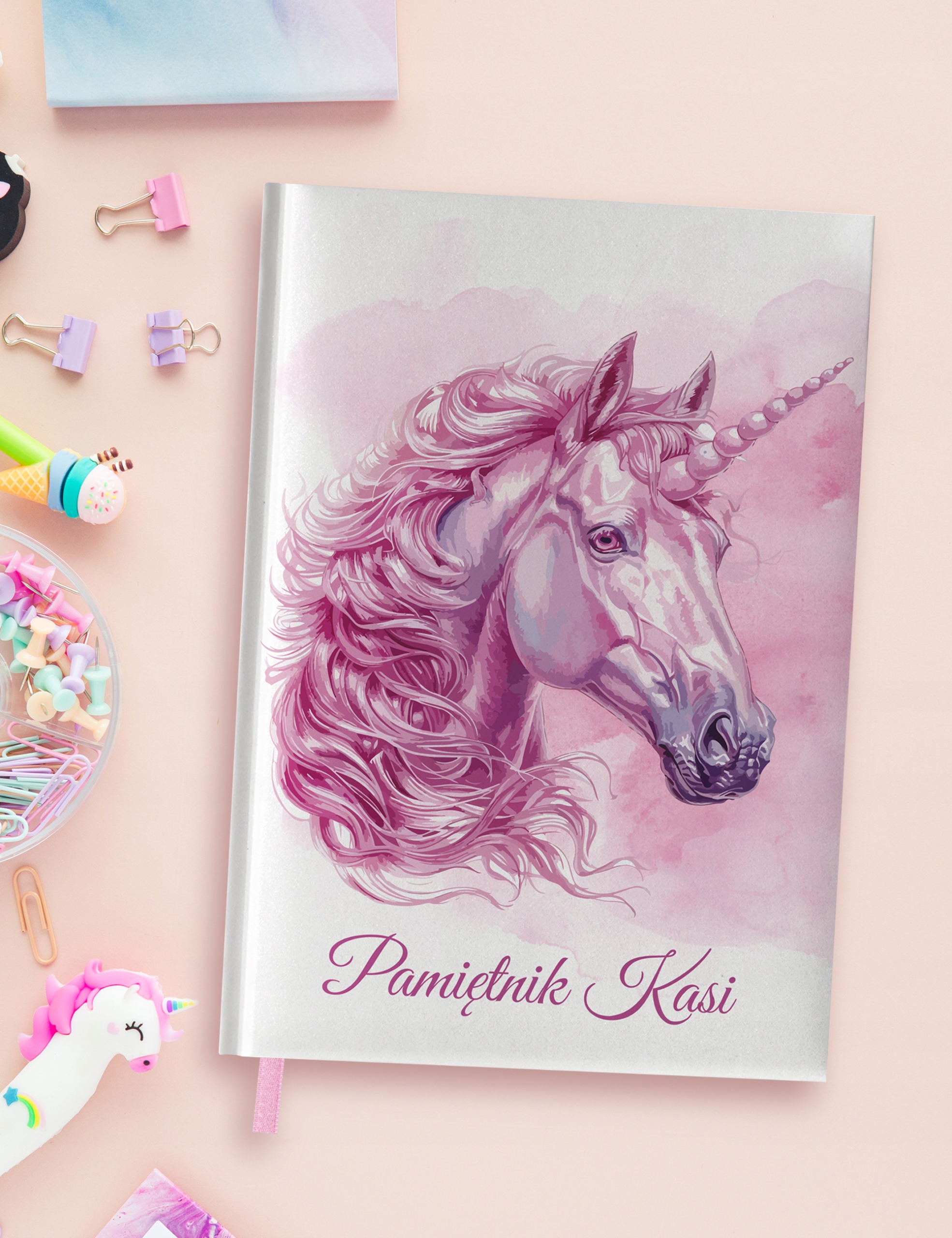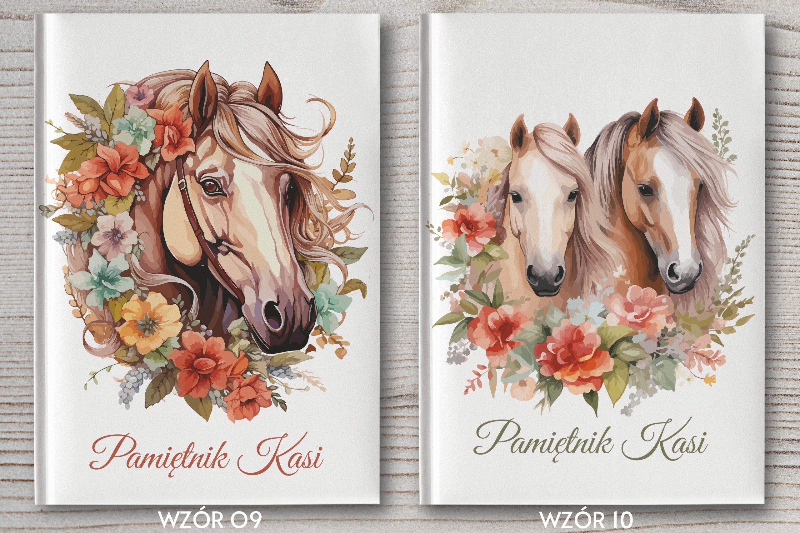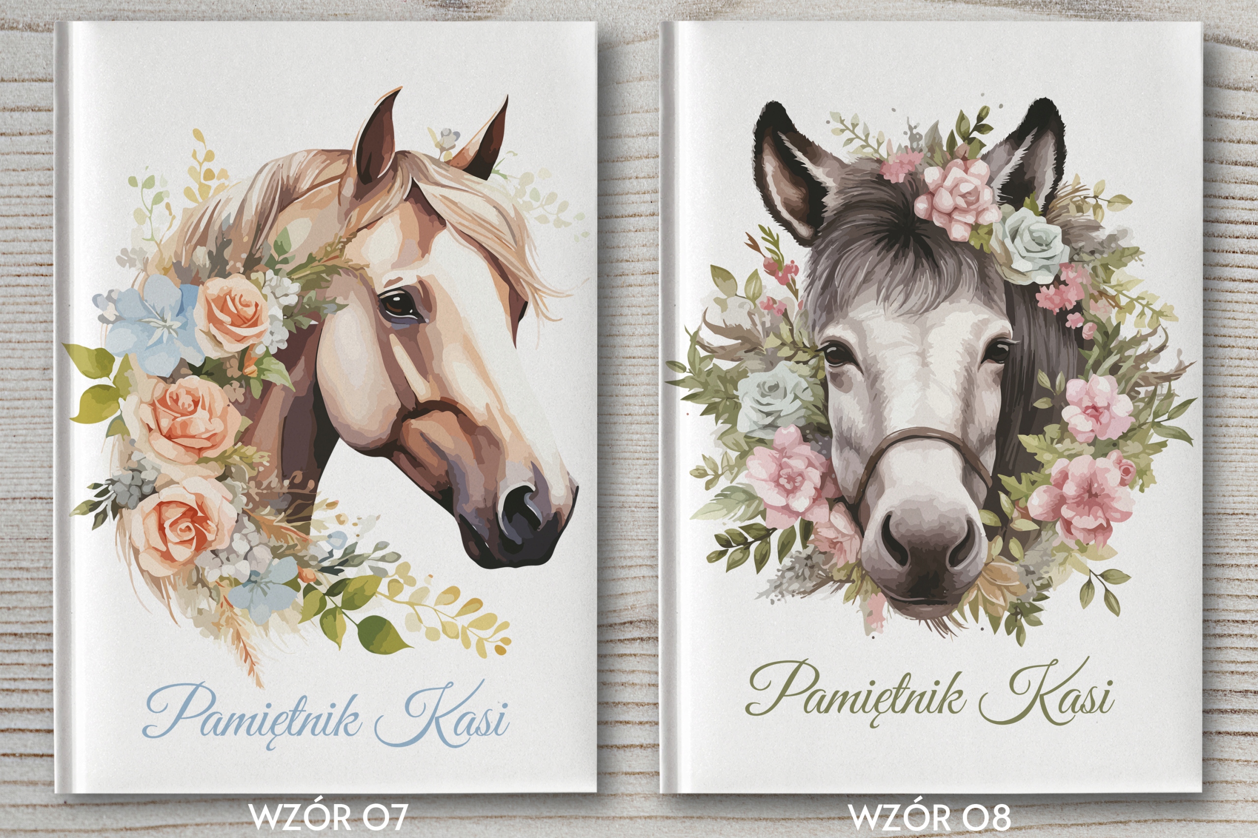 Тема продажу- це персоналізований та унікальний щоденник/книжковий ноутбук у білому перлині mila . Обкладинка прекрасно мерехвує, і тривалий УФ -друк робить ноутбук відмінним та оригінальним подарунком для кожного любителя коней .
