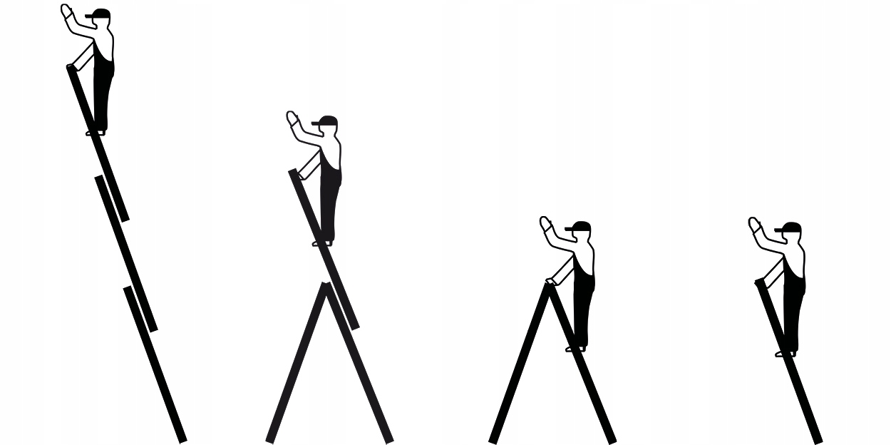 Трьохелементна багатофункціональна драбина. Можна використовувати як висувну, косу або окремо стоячу драбину.