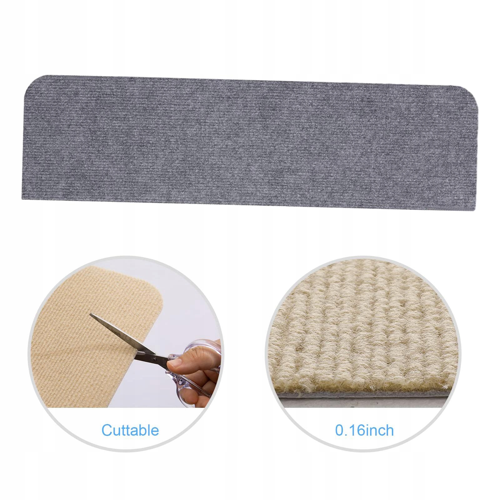 [відповідний розмір]: 30 дюймів х 8 дюймів для кожного шматка. Розмір відповідає більшості внутрішніх сходів, а кількість відповідає потребам більшості сімей. Навіть якщо ваш крок трохи унікальний, ви можете легко вирізати протектор килима ножицями.