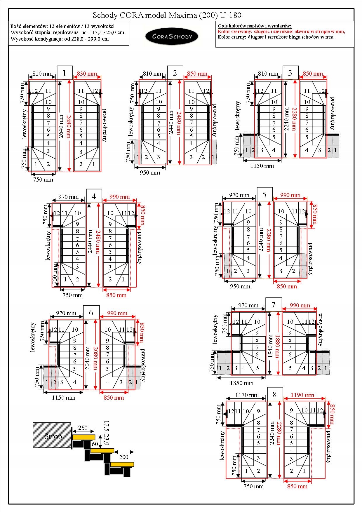 Сходи Maxima 08 можна встановити в одній з 44 конфігурацій, всі з яких представлені виробником. Дана модель має оригінальну обробку U-180 як праву так і ліву. Замовити просту процедуру можна після додавання анотації до форми замовлення.