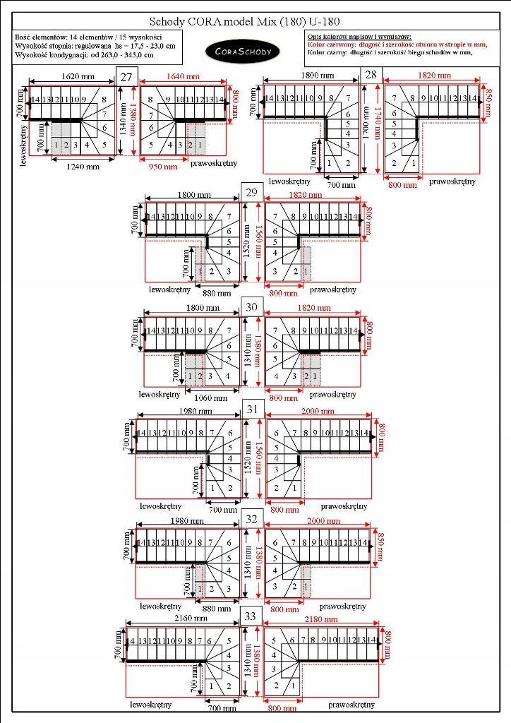 Від підлоги до підлоги 245 - 322 см - 13 сходинок / 14 висот (- 1 сходинка)