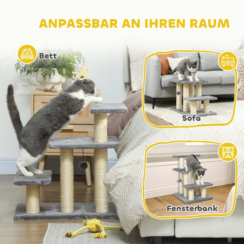 Подряпайте та грайтеся: покриті сизалем стовпи цих котячих сходів задовольняють природний інстинкт дряпання вашого кота. Дозвольте вашому вихованцеві весело лазити та захищати ваші меблі.