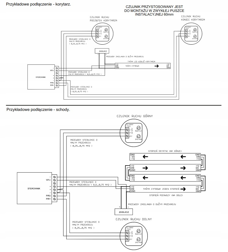 Сходовий і коридорний контролер має багато динамічних ефектів, зокрема: сходинки, що розгортаються/згортаються, і статичні (ми можемо отримати ефект окремо освітлених сходинок). У комплект з контролером входять два датчики руху FS11, які по черзі вмикають/вимикають освітлення.