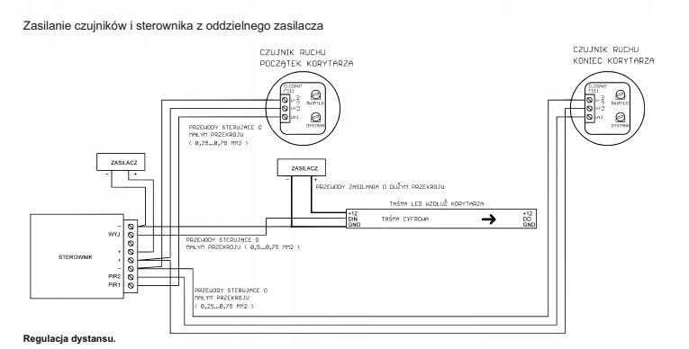Контролер також може працювати в режимі коридору. Залежно від того, з якого боку коридору ми заходимо, контролер запускатиме ефект розширюючої світлової лінії.