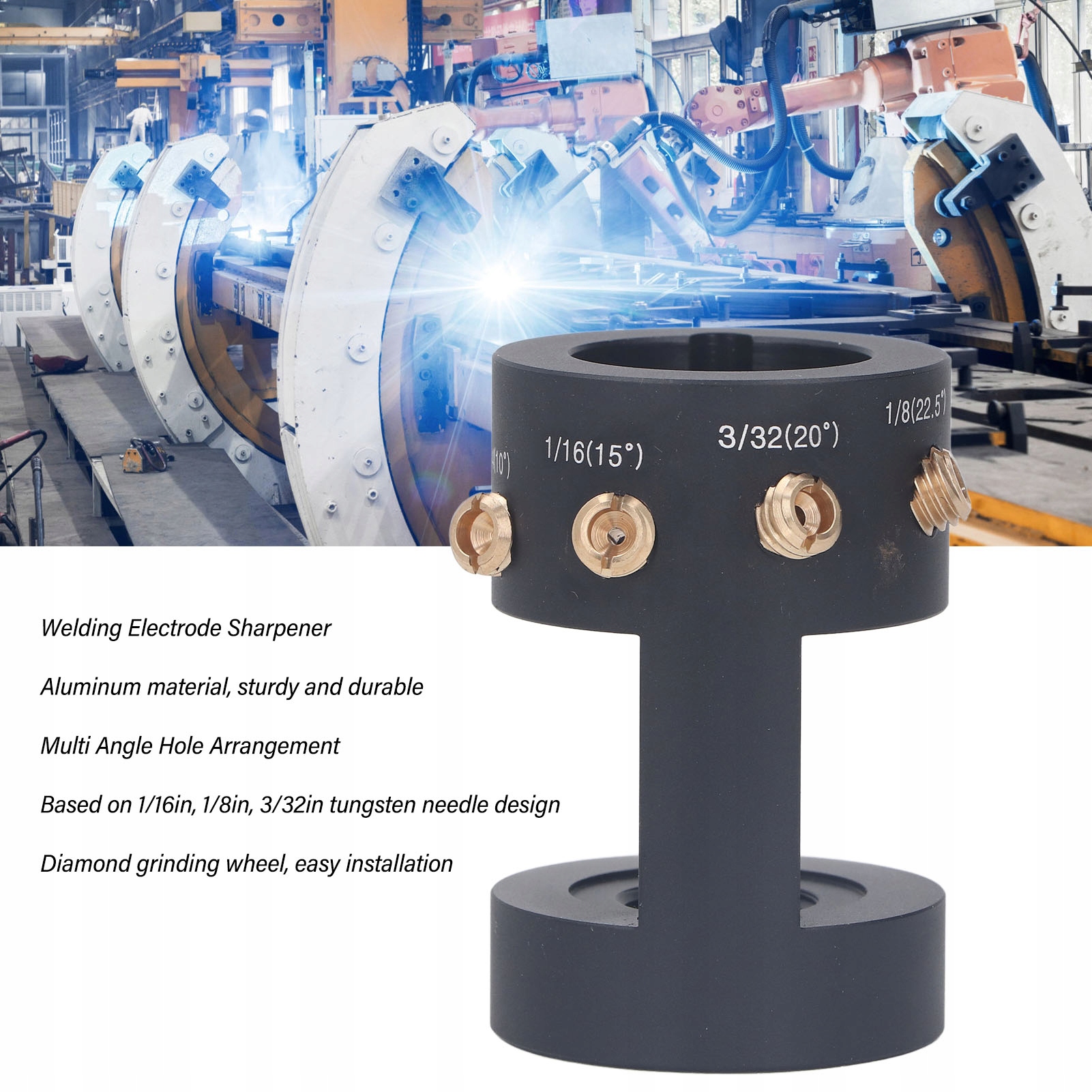 4. Багато кутів: точилка для зварювальних електродів має структуру з багатьма кутами, з гуманізованою системою зсуву кута, ефективно зменшуючи втрати.