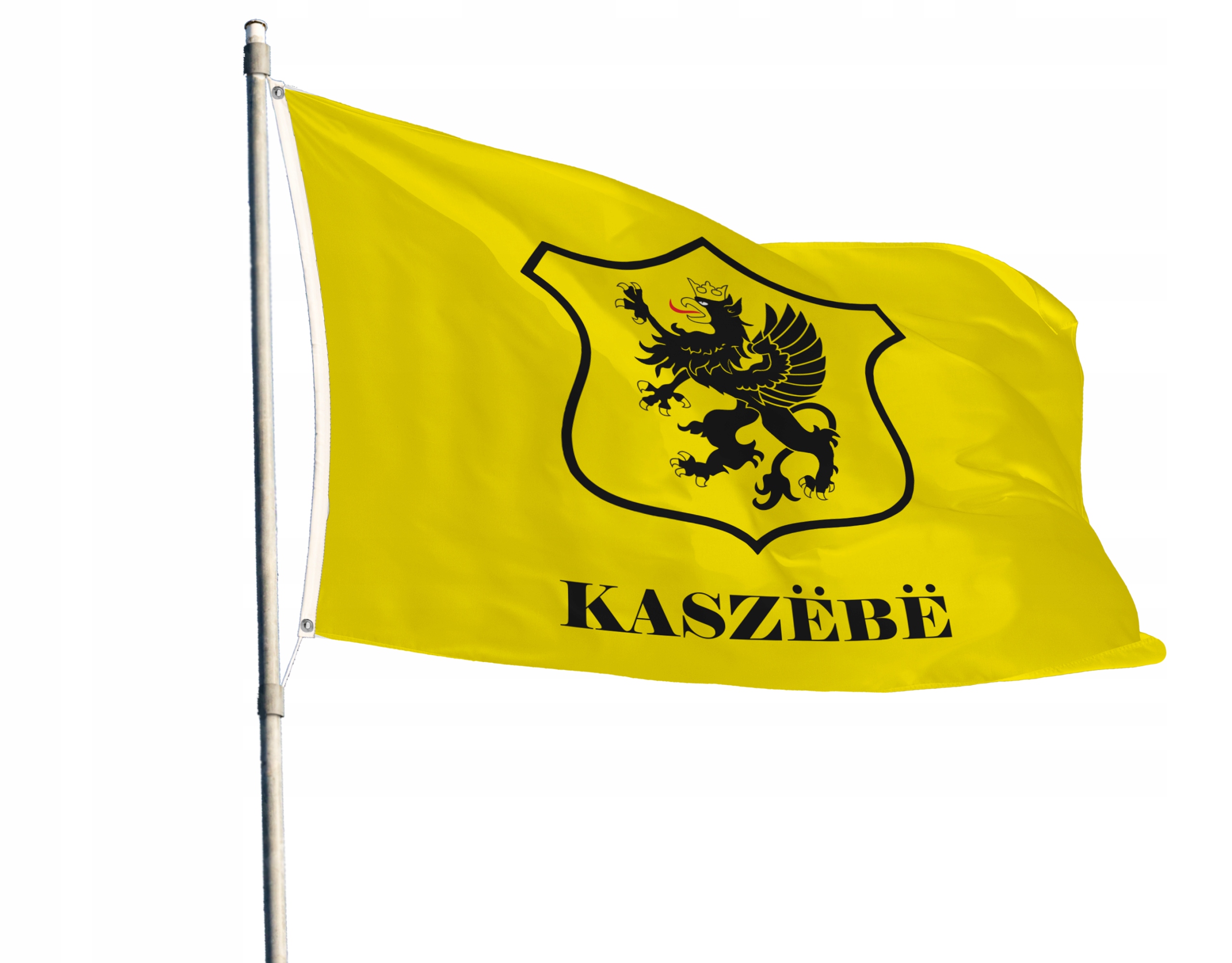 Кашубський прапор - походить від кашубського герба, чорного грифона з короною на золотому тлі. За правилами геральдики це означає чорно-золотий (жовтий) прапор з двома однаковими горизонтальними смугами, де колір герба надає кольору верхній половині, а колір поля - нижній ( подібно до польського прапора).