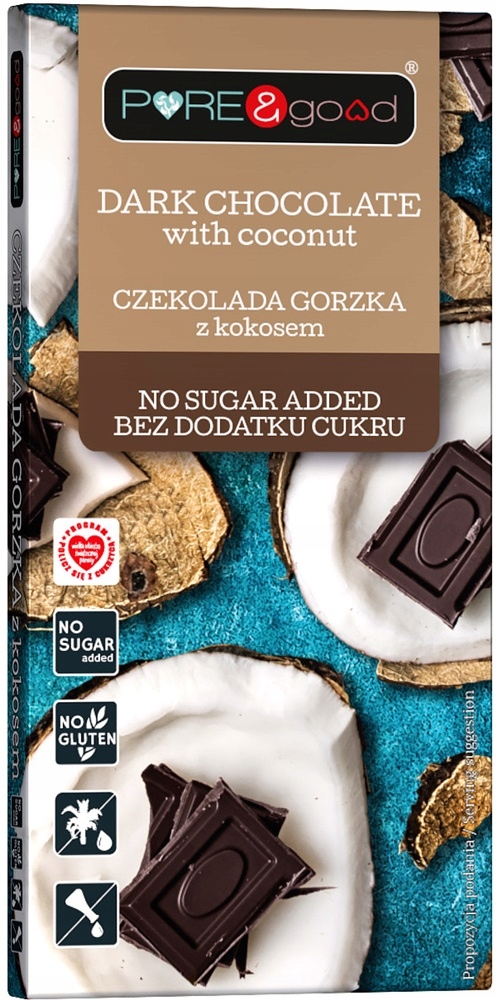 Чорний шоколад з кокосом без цукру 75 г - Pure & Good