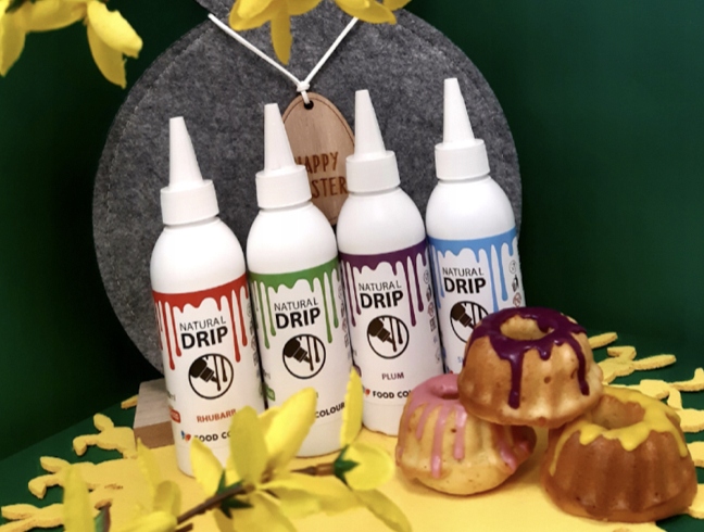 Готова до вживання фіолетова шоколадна крапельниця. Крапельниця містить тільки натуральні барвники. Його основним інгредієнтом є білий шоколад і какао-масло. Зручна пляшка з вузьким носиком дозволяє акуратно прикрасити торт.