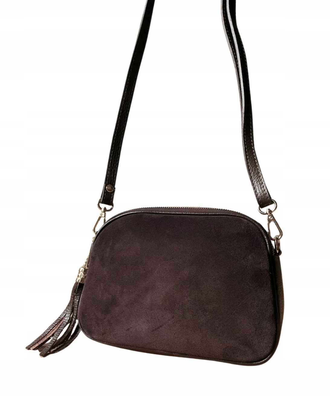 ШОКОЛАДНА ЗАМШЕВА СУМКА-ПОВІДОМЛЕННЯ, КОРИЧНЕВА, бахрома VERA PELLE