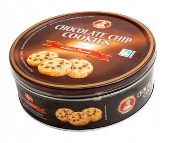 Алергени Може містити сліди ГОРІХІВ і ЯЄЦЬ. Інгредієнти ПШЕНИЧНЕ борошно, пальмовий жир, цукор, шоколадна стружка 6,5% [цукор, какао терте, какао-масло, емульгатор: лецитини (СОЯ)], глюкозно-фруктозний сироп, кукурудзяний крохмаль, нежирний какао-порошок, розпушувачі: бікарбонат натрію, гідрокарбонат амонію; сіль харчова, МОЛОКО сухе знежирене, ароматизатори натуральні.