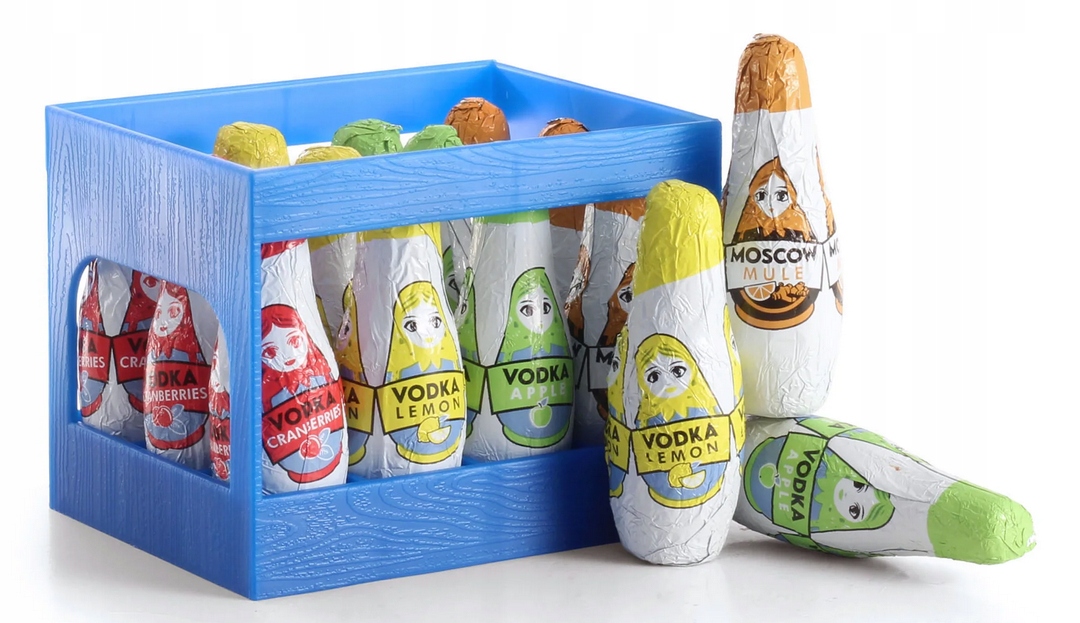 «Шафа» з 12 шоколадними цукерками, наповненими шоколадним лікером зі смаком яблука (3 пляшки), лимоном (6 пляшок) і горілкою зі смаком журавлини (3 пляшки).