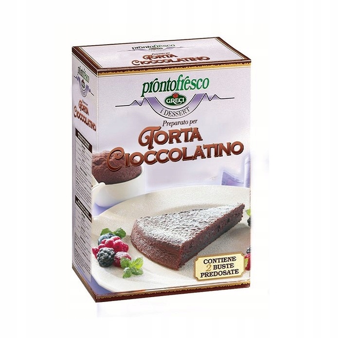 Порошкова суміш для приготування вишуканого шоколадного торта. Шоколадний торт, як правило, темно-коричневого кольору, має вологу кремову внутрішню частину та має насичений і сильний смак темного шоколаду. Ця заготовка виготовляється за традиційним рецептом і характеризується високим вмістом какао та шоколаду: 11% какао-порошку (містить 22-24% какао-масла. Тому це не знежирене какао) та 4% шоколадної пудри. Це повна підготовка, що вимагає лише додавання води. Запекти в духовці. Тісто має ніжну і компактну консистенцію всередині. Цей же препарат можна використовувати для приготування шоколадного суфле.