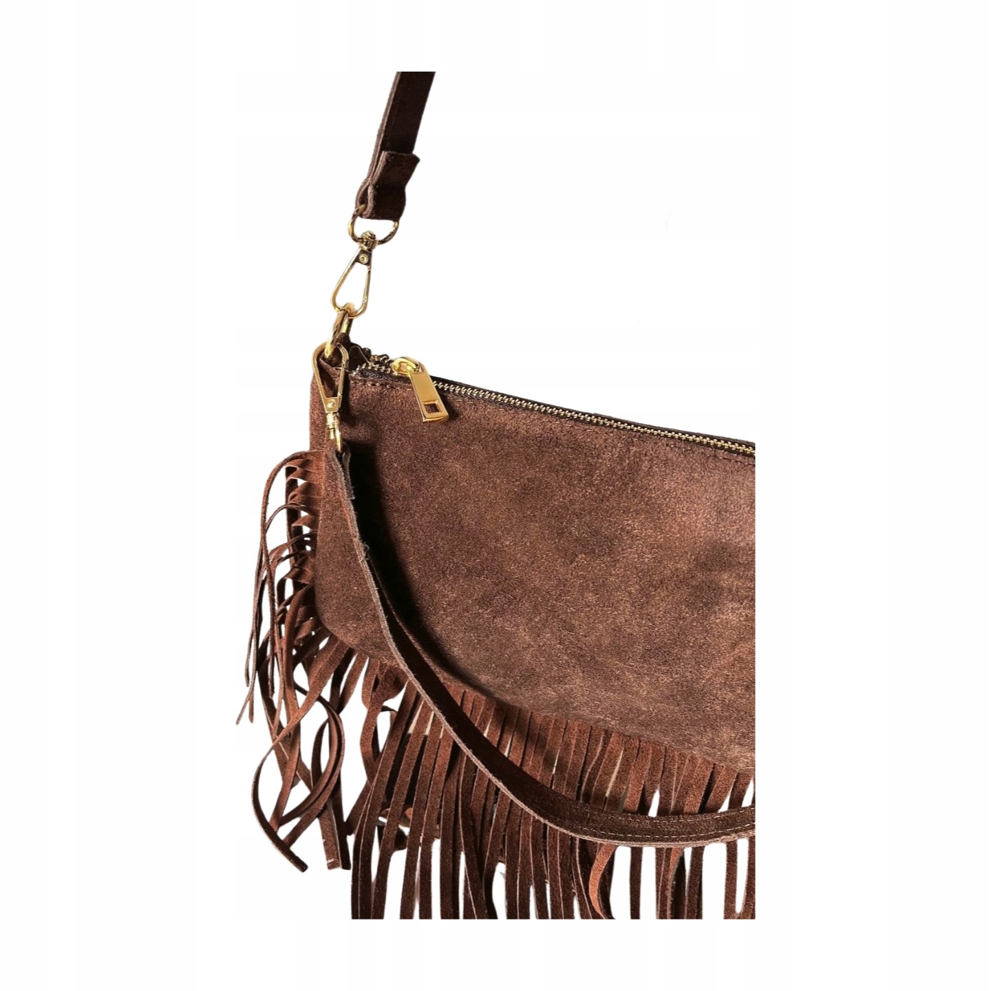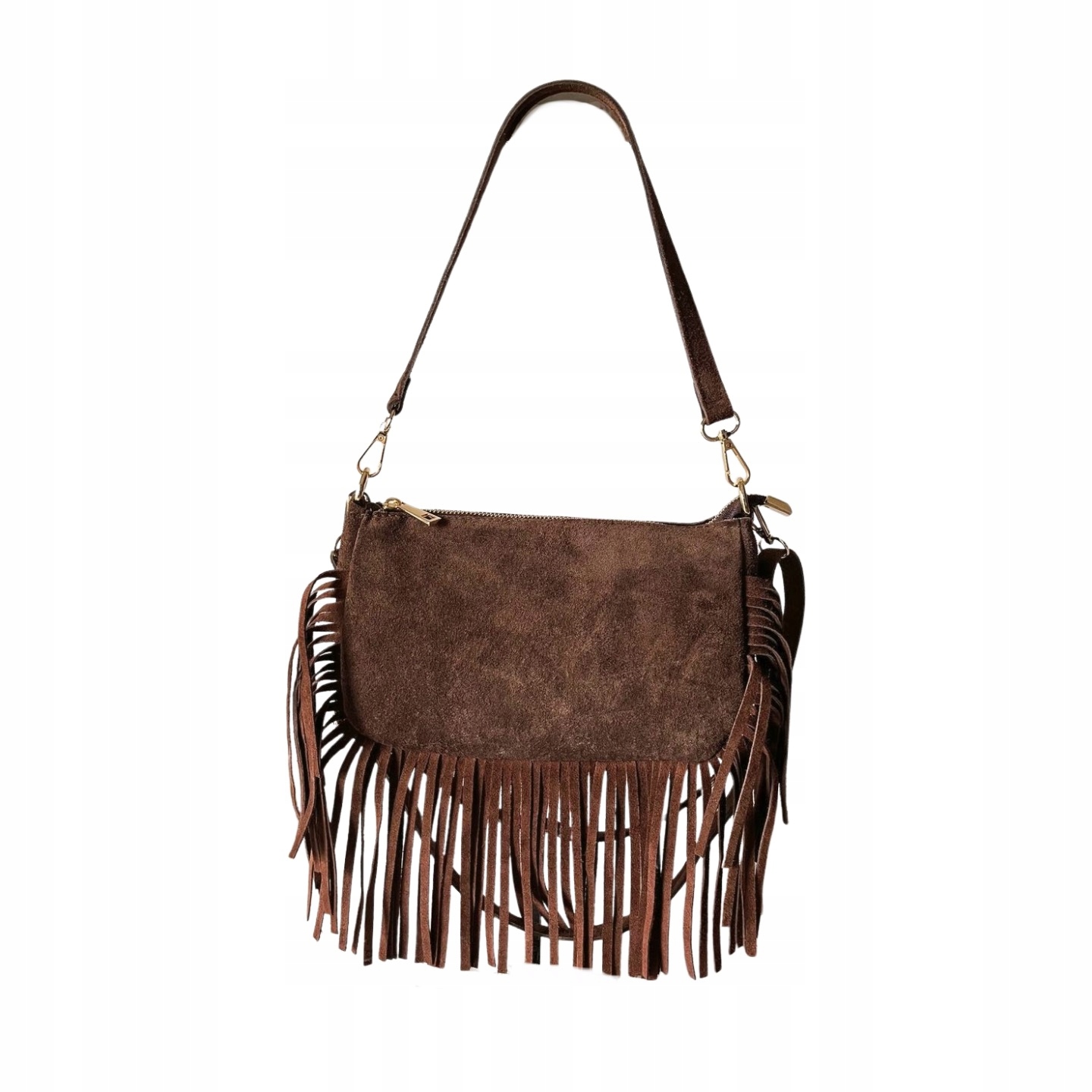 Віра Пелл - італійський шоколадний коричневий модний шкіряний мішок. Boho бахрома Mester PLN
