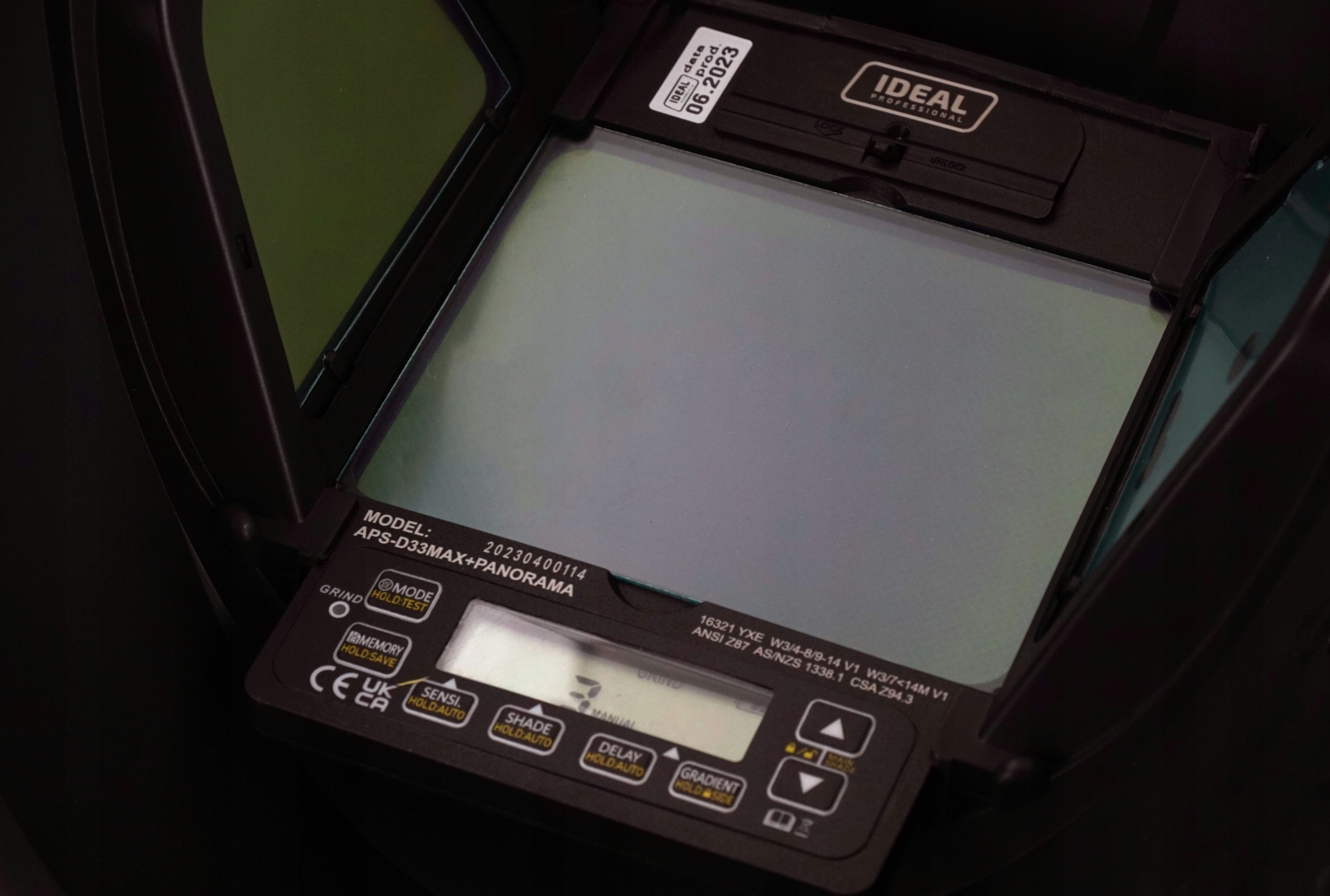 Елементи регулювання чутливості та затримки всередині шолома APS D33 MAX PANORAMA дозволяють нестримно регулювати робочі параметри, а 5 датчиків інтенсивності світла забезпечують швидше автоматичне затемнення - особливо під час роботи в нестандартному положенні.