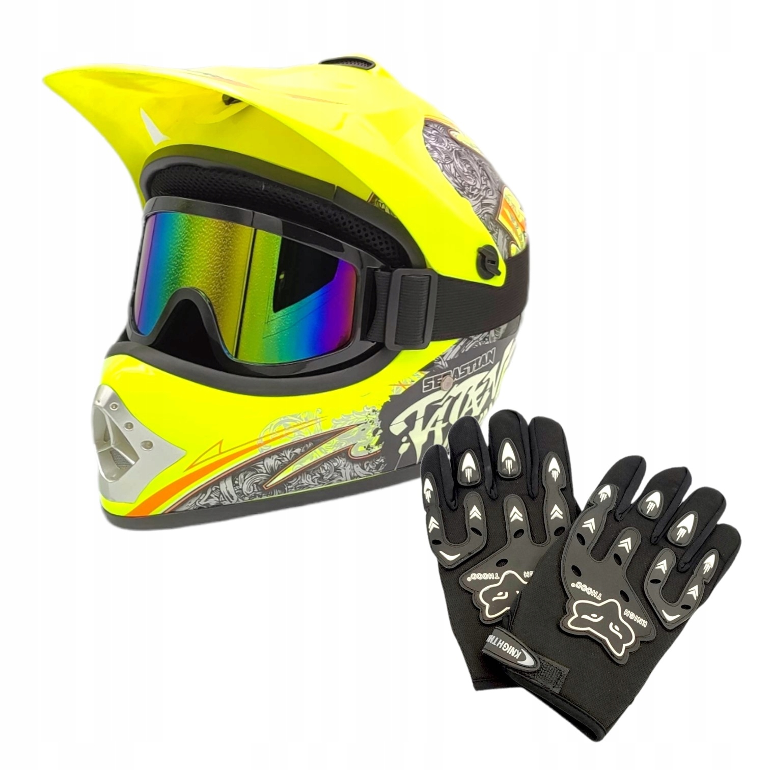 КРОСОВИЙ МОТОЦИКЛЕТНИЙ ШОЛОМ + ОКУЛЯРИ + РУКАВИЧКИ