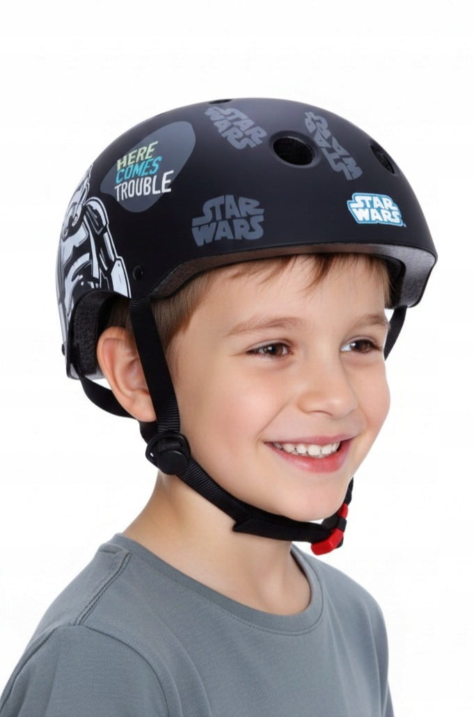 Спортивний шолом з мотивом Зоряні війни призначений для дітей, які катаються на велосипеді, роликах, роликових ковзанах і самокаті. Ідеальний вибір для юних любителів активного відпочинку та культової серії «Зоряні війни».