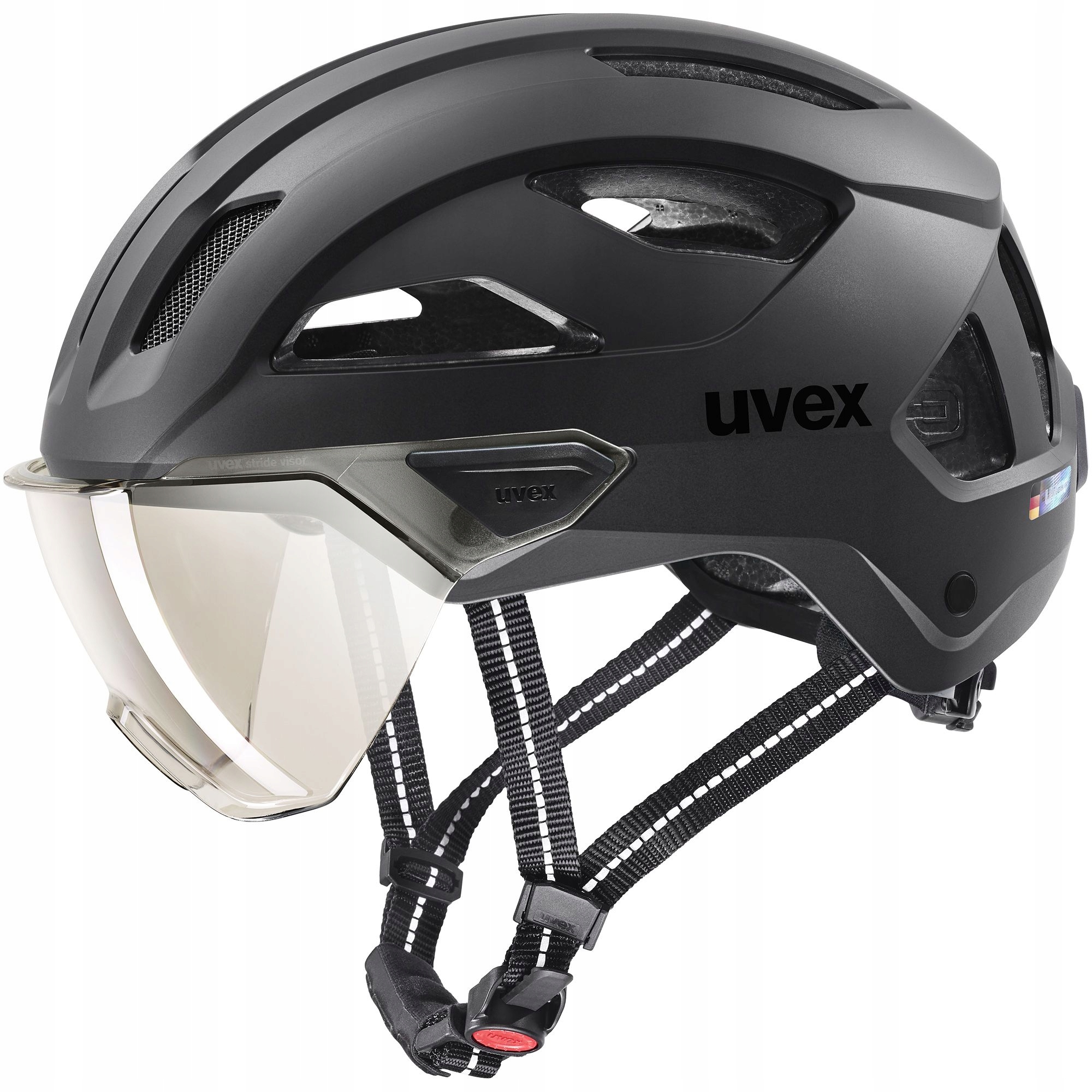 безпечний. Видно. Практично. Важко знайти кращий спосіб захистити голову та очі, ніж козирок uvex. Цей шолом із келихом, ідеально підходить для щоденного доступу та водіння міста, набагато більше, ніж модне доповнення до електричного велосипеда або стильного міського велосипеда. Його конструкція з твердих культур із зовнішнім покриттям, виготовленим з полікарбонату та легкою оболонкою EPS, робить його надзвичайно стійким до впливу. Трохи потемніло, стійке скло, стійке до подряпина забезпечує найширше можливе поле зору - що має вирішальне значення при русі міського руху. Ви також можете носити окуляри за рецептом із шоломом козирки UVEX. Сучасне кріплення дозволяє легко замінити об'єктив темнішим або прозорим. Вбудована світлодіодна лампа ззаду збільшує видимість цього шолома в темряві. Ще одна переваги - це зручний мономатичний затискач UVEX, який можна керувати однією рукою, і канал для легкого захисту від Hiplook з Lok.
