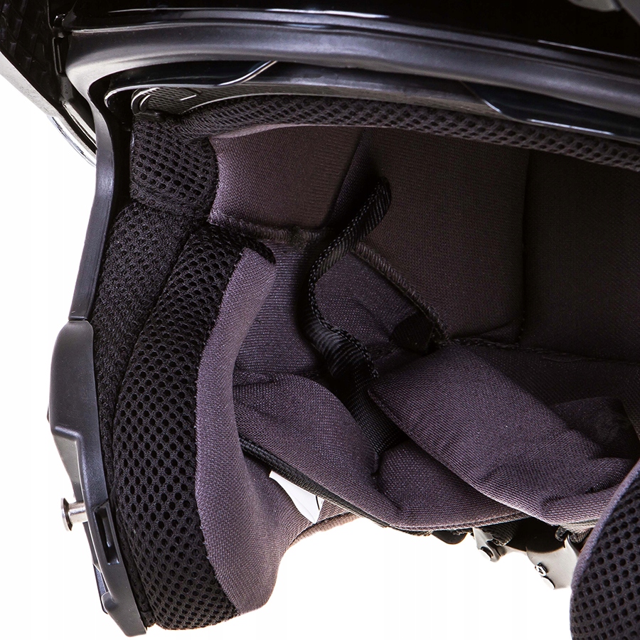 Механізм підйому та фіксації щелеп надзвичайно простий у використанні, навіть якщо ви одягаєте товсті рукавички, тому підняти щелепу, наприклад, коли зупиняєтеся на світлофорі, не проблема. Важливо, що шолом має спеціальний дозвіл, що робить його придатним для їзди з піднятим підборіддям.
