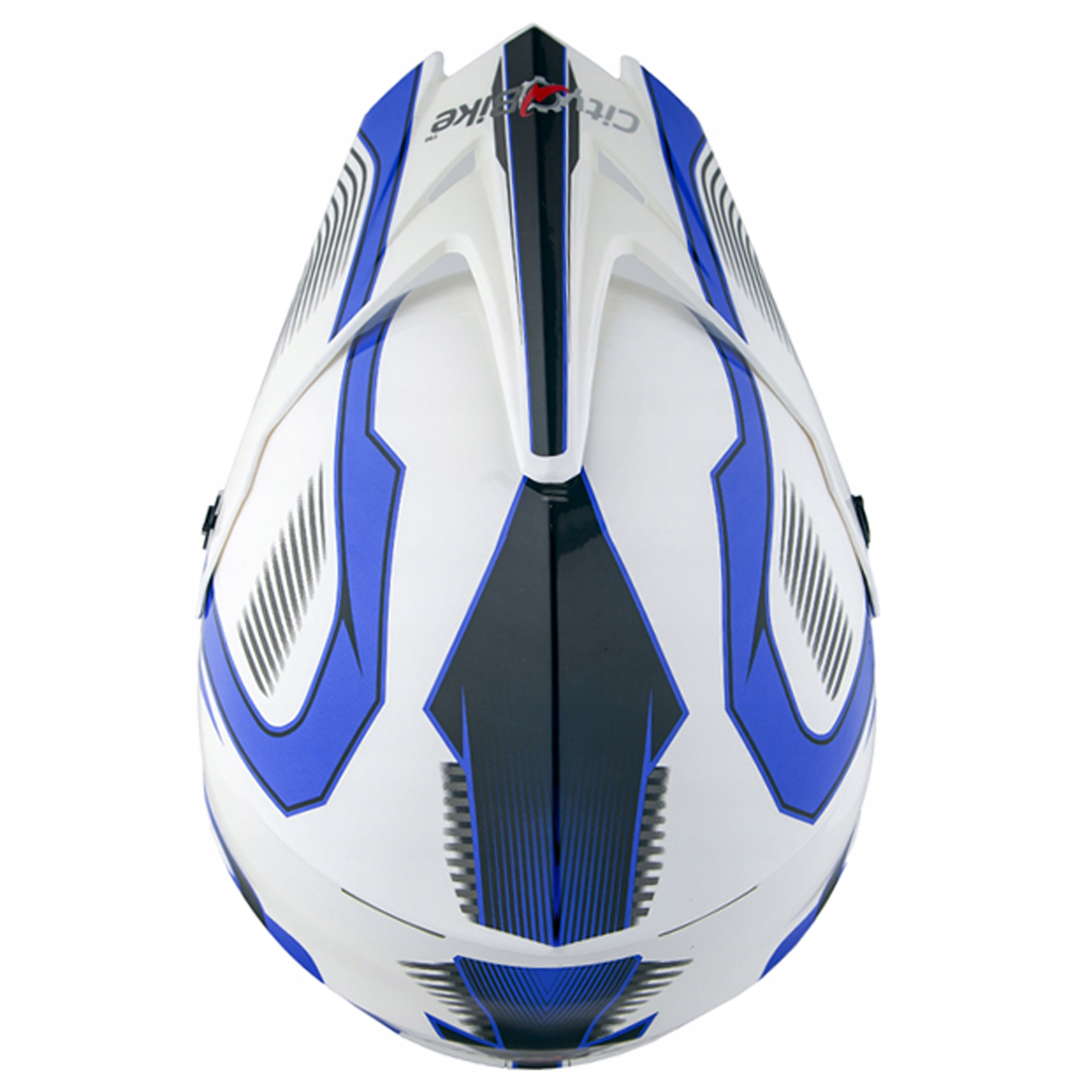Експресивний білий та синій дизайн з чорними акцентами не тільки динамічно , але й збільшує видимість доріг. Дах захищає проти сонця та грязі, що робить шолом надійним партнером у будь -яких умовах.
