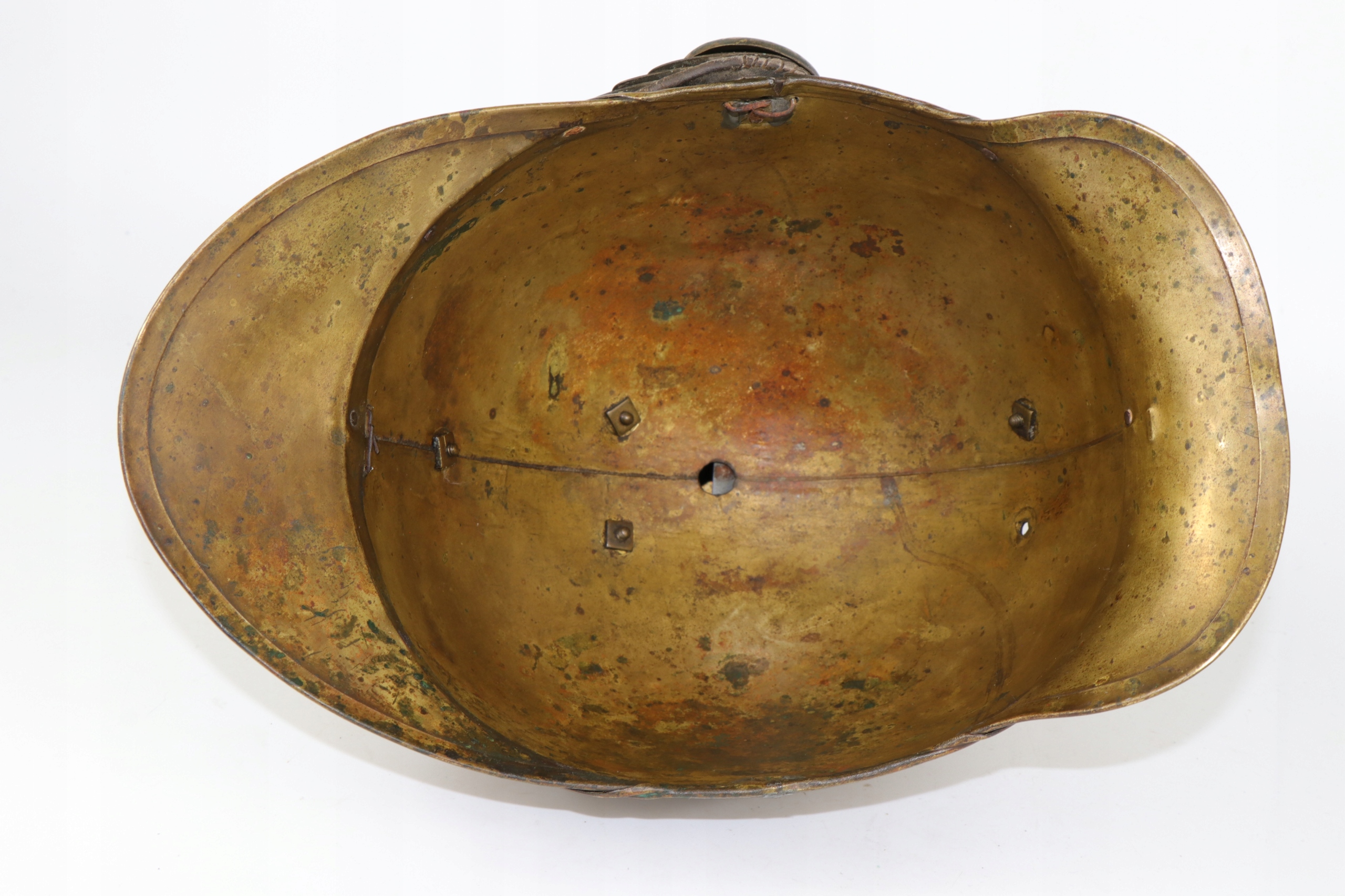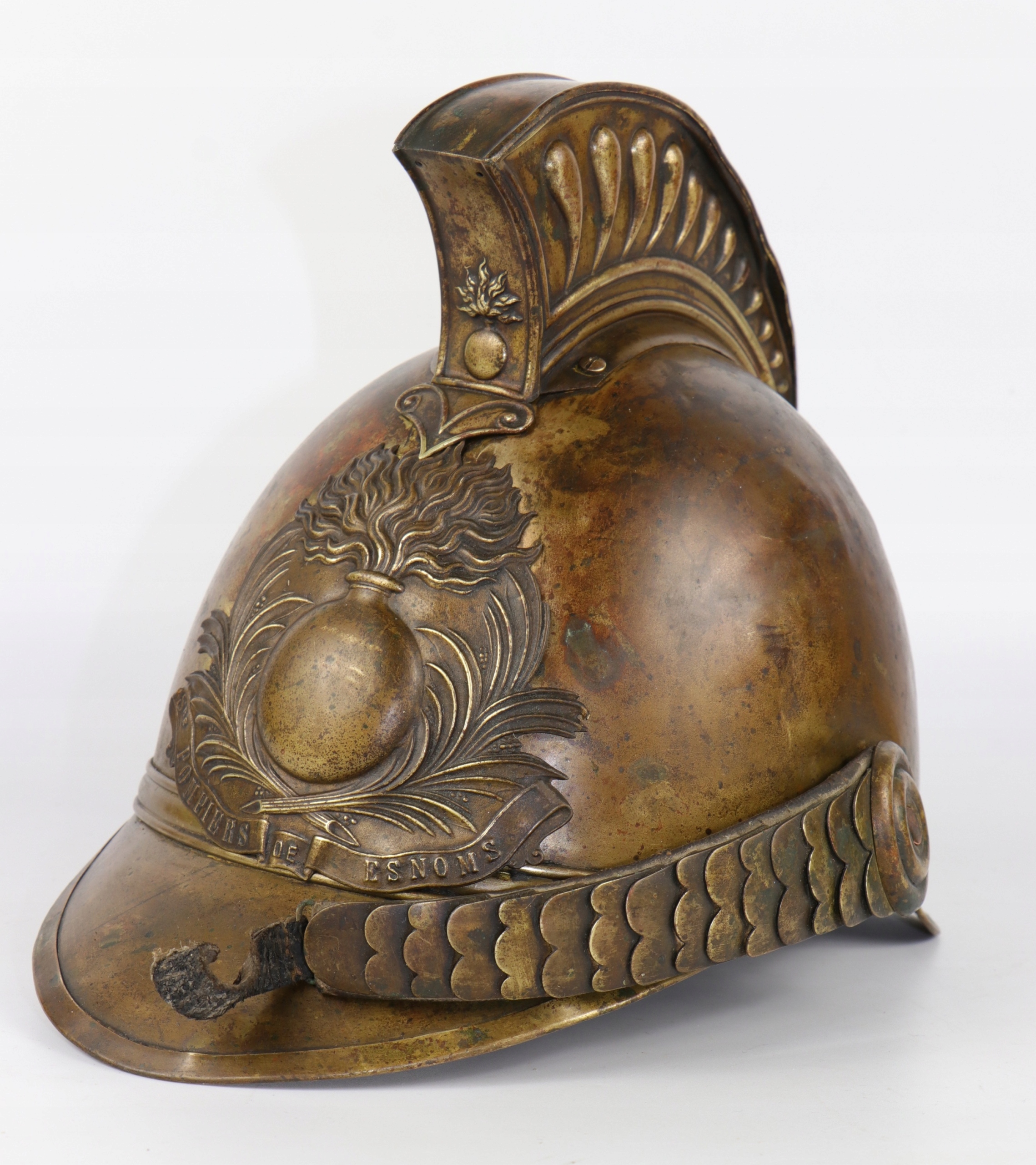Цікавий латунний шолом, пожежний шолом Sapeur pompiers під назвою Campagnard. Шолом періоду Третьої республіки, модель 1885. Srs Pompiers de Esnoms.