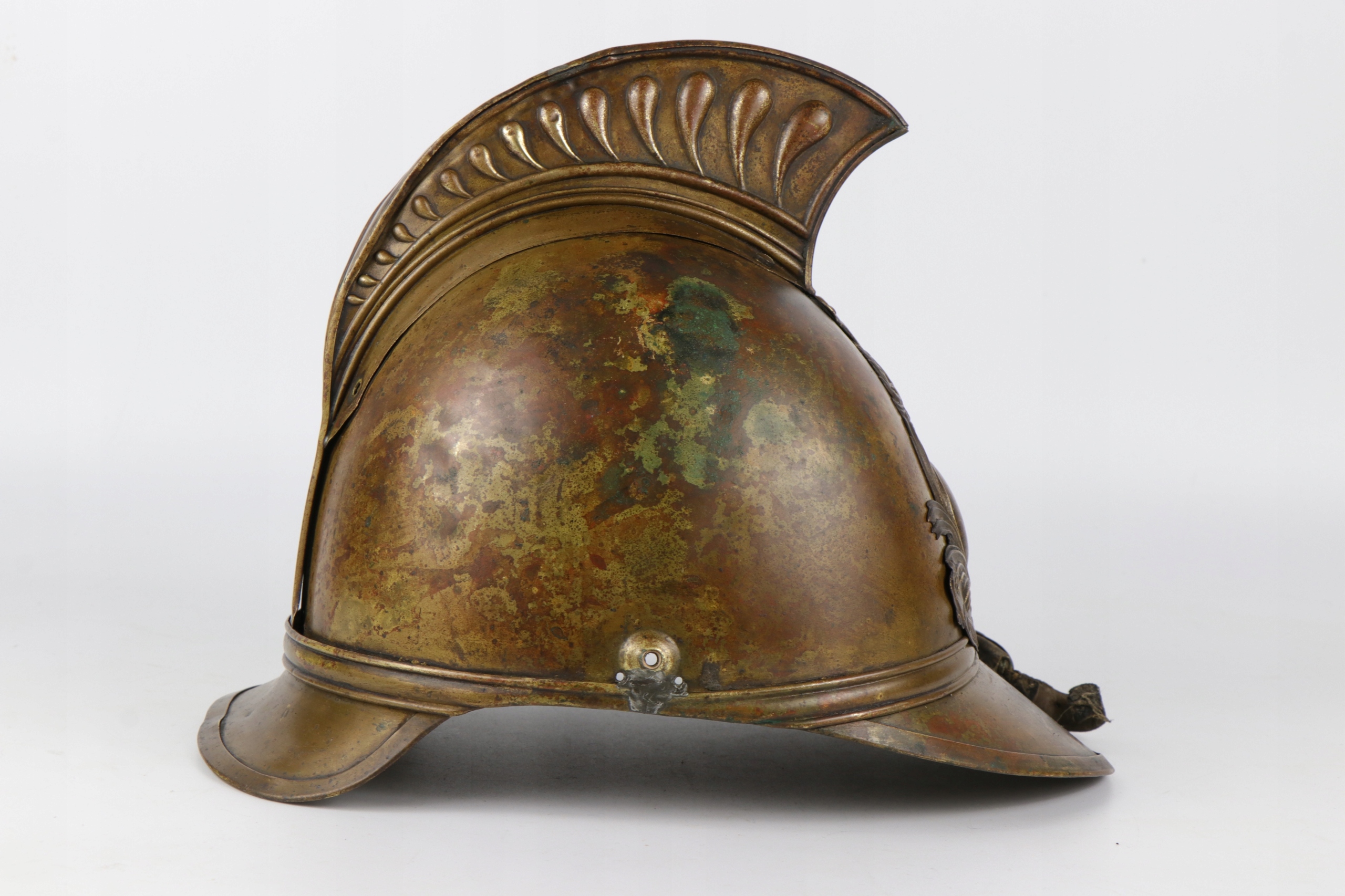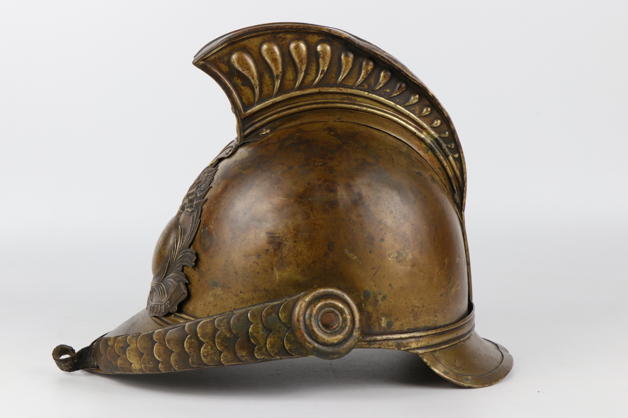 Цікавий латунний шолом, пожежний шолом Sapeur pompiers під назвою Campagnard. Шолом періоду Третьої республіки, модель 1885. Srs Pompiers de Esnoms.