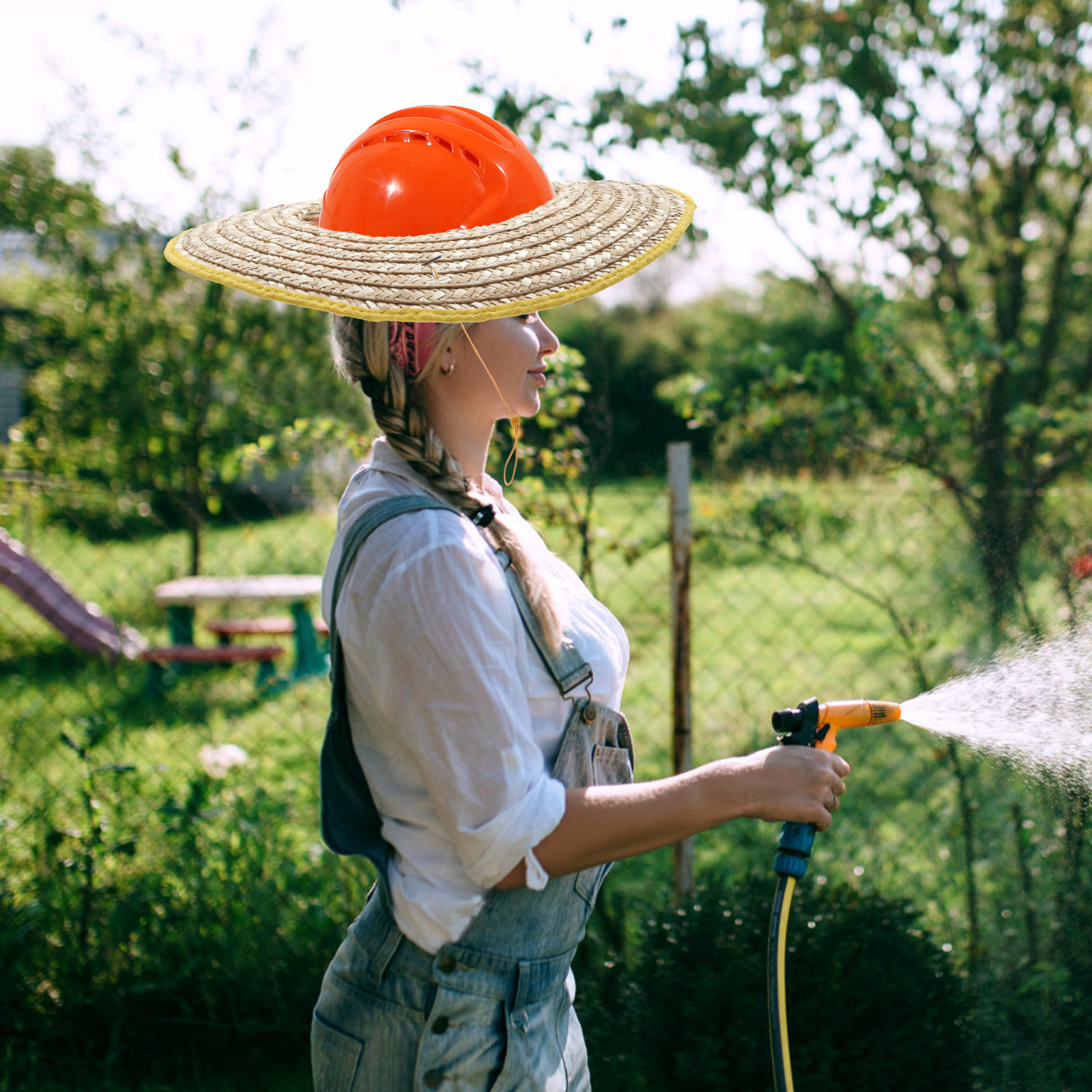 ✅З широкими полями, сонцезахисний козирок шолома виготовлено з дихаючого матеріалу пшеничної соломи. Проста конструкція, невелика вага, легко встановлюється в захисний шолом. Гарне доповнення до вашої роботи. З цим сонцезахисним козирком шолома вам не доведеться турбуватися про сонячні опіки в таких місцях, як будівельні майданчики, сади тощо.