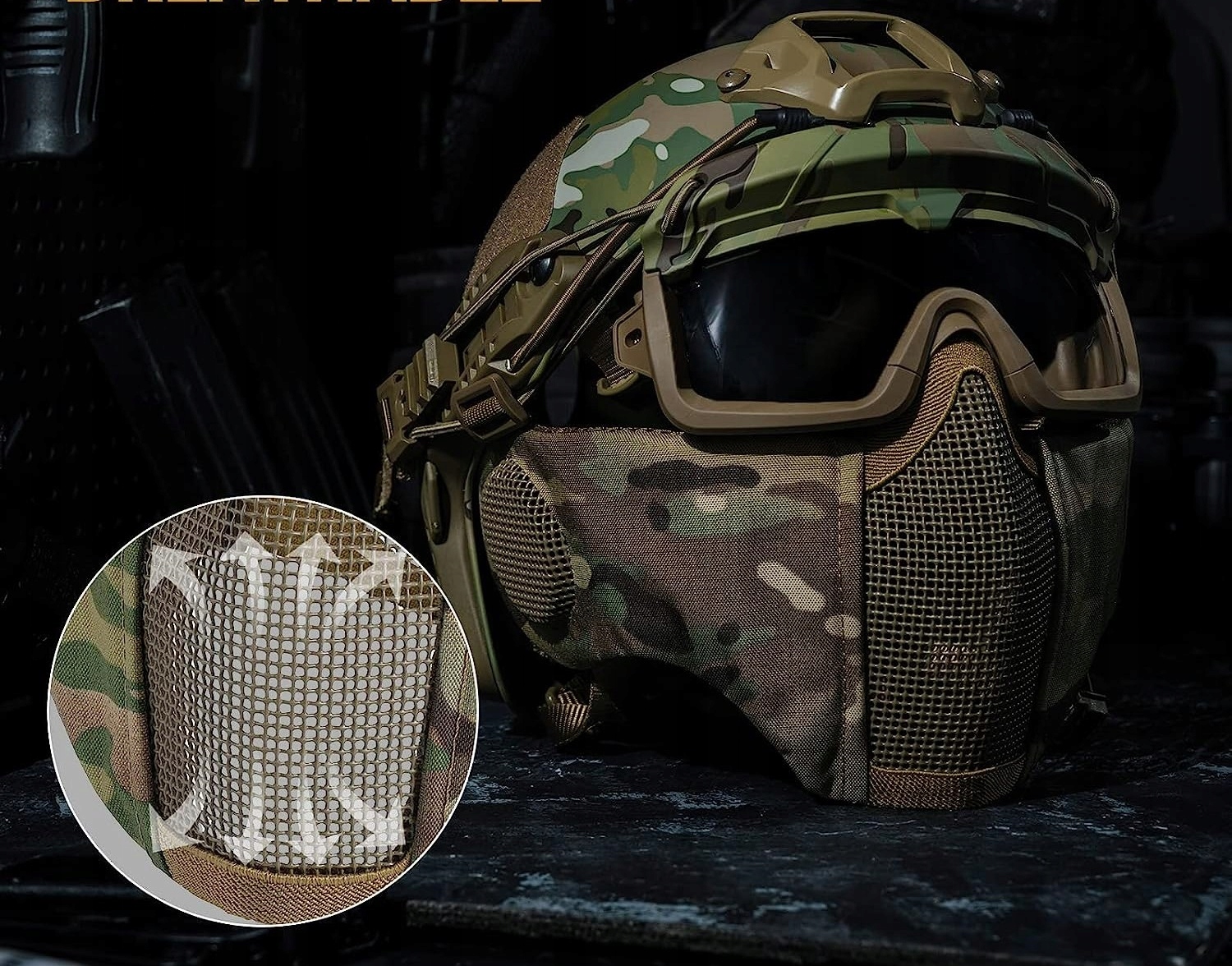 Повний захист - страйкбольний шолом, маска для обличчя та захисні окуляри - це чудове та ідеальне поєднання. Конструкція 3 в 1 забезпечує повний захист голови. Шолом, маску та захисні окуляри можна використовувати окремо, ви можете комбінувати своє спорядження відповідно до ваших потреб у грі.