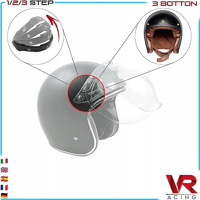 VRacing Helmet Visor 3 Buttons Universal Jet шолом і Bubble Visor Custom Retro Vintage з 3 регульованими по висоті підйомними механізмами в комплекті (прозорий механізм)