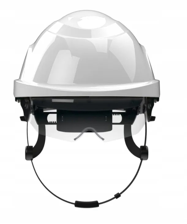 ШОЛОМ ЗАХИСНИЙ, ВЕНТИЛЬОВАНИЙ ШОЛОМ В ОКЛЯРАХ, БІЛИЙ З КОЗИРКОМ ЗАХИСТУ ОЧЕЙ