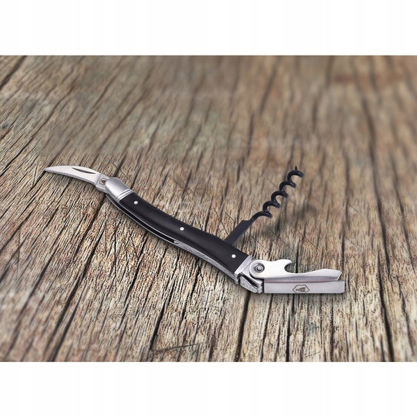 Sommelier Laguiole поєднує штопор і різак для фольги і відкривачка для пляшок. Виготовлений з благородних і міцних матеріалів. Завдяки нержавіючій сталі та дерев'яній ручці, пакка стійка до перепадів температури та води. Штопор має антипригарне покриття, що дозволяє легко відкорковувати пляшки з вином. Ковпачок знімається простим рухом. Оснащенийпростим важелем,сомельє Laguioleзабезпечує надзвичайно зручне використання.Незамінний для пікніків, вечірок і аперитивів. Поставляється в дуже елегантній коробці, сомельє Laguiole стане чудовою ідеєю для подарунка.